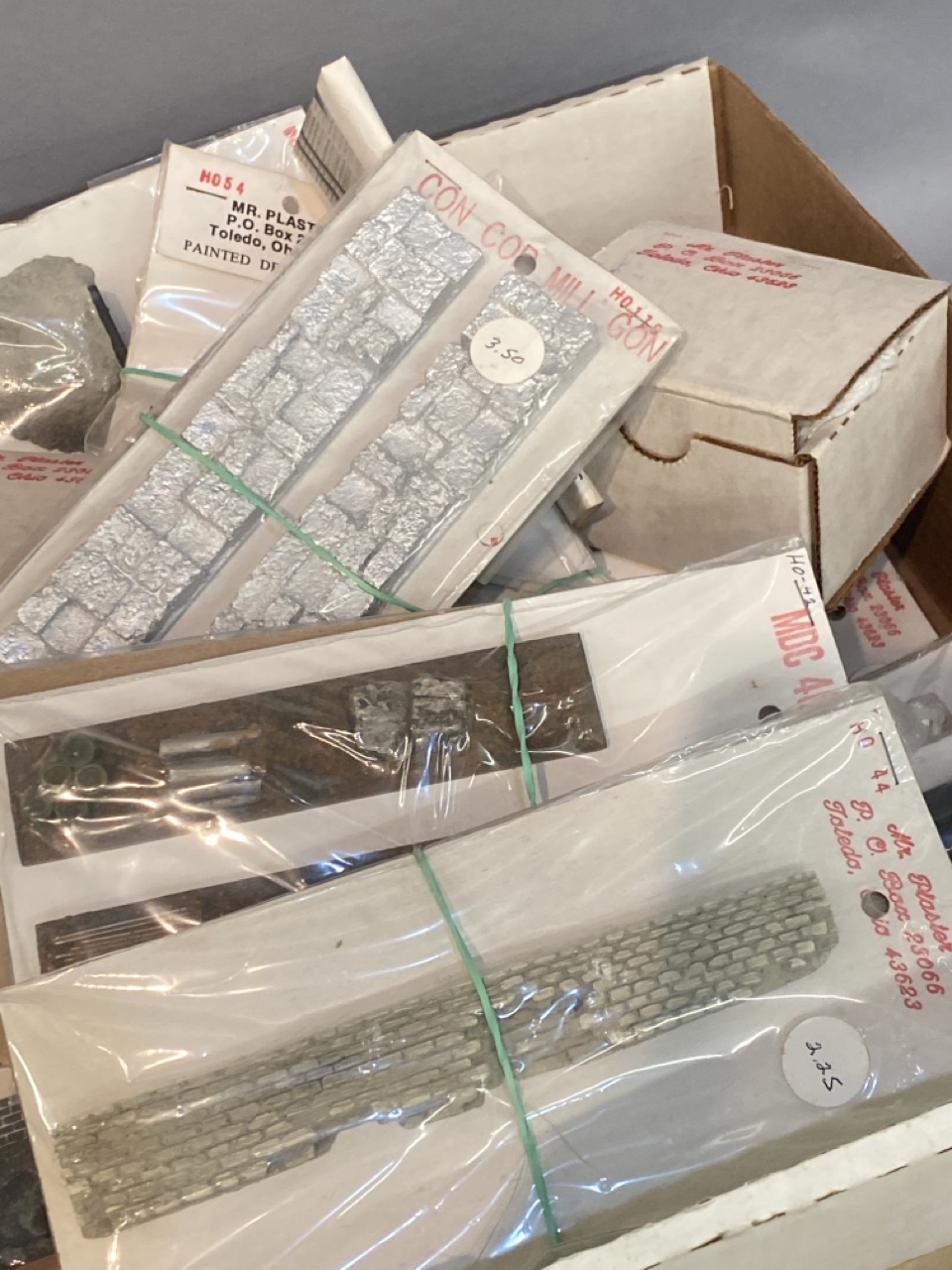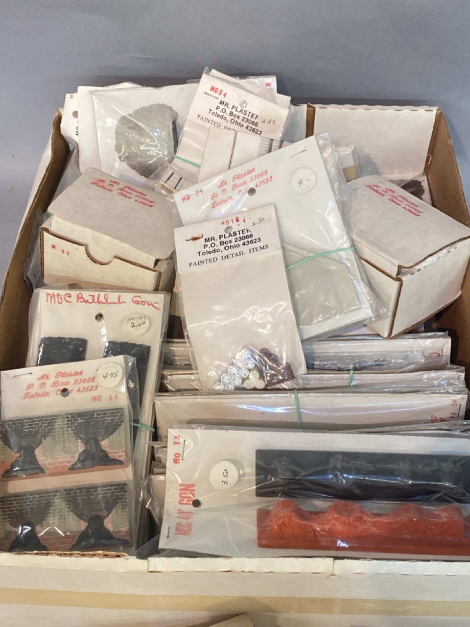 40+ piece vintage Mr. Plaster HO Train layout accessories new old stock and packages, Toledo Ohio