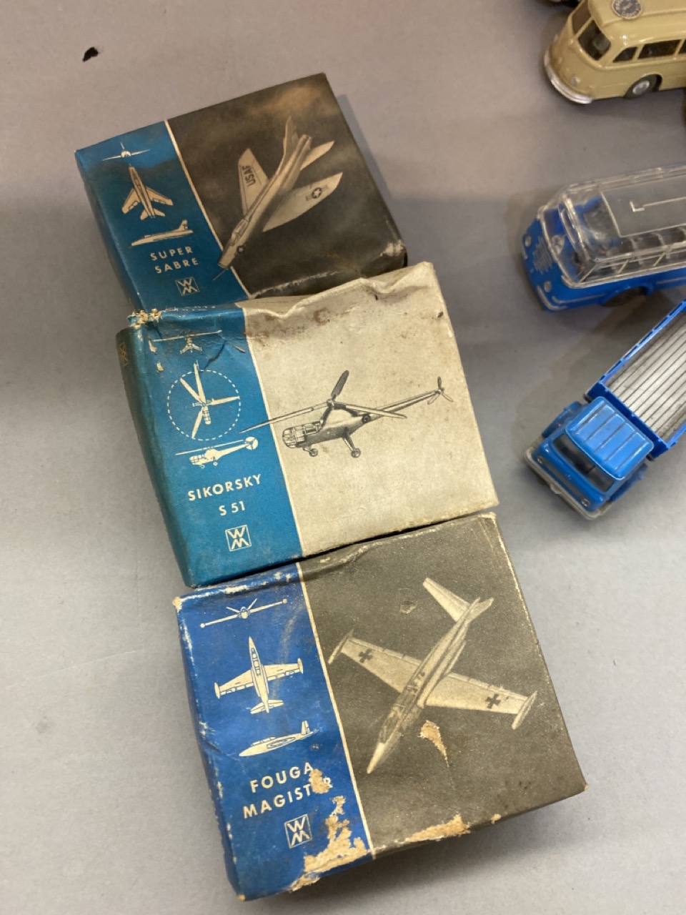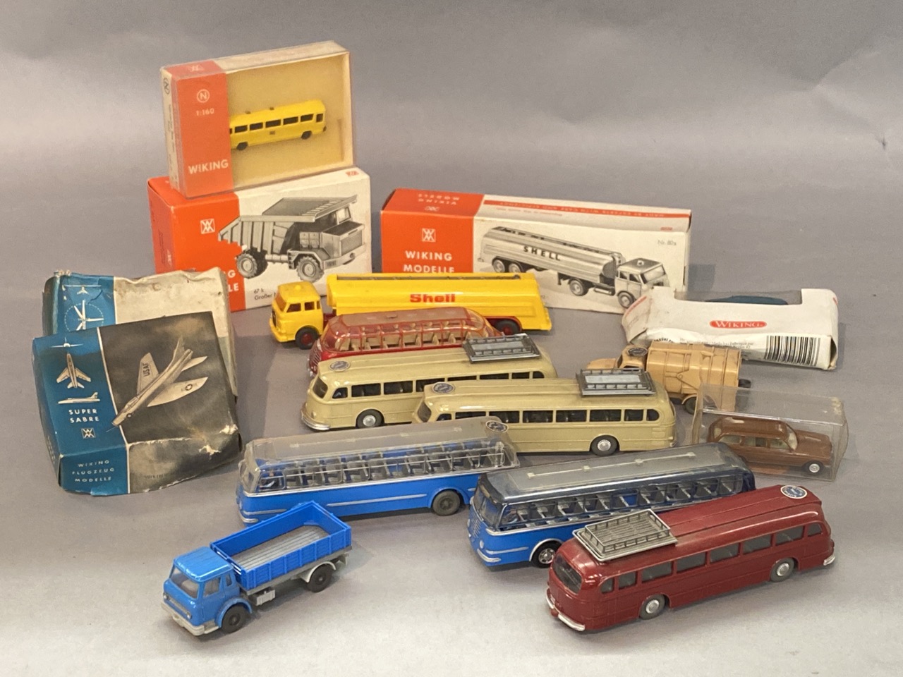 Seventeen (17) Piece Wiking vintage airplanes, trucks and buses. Made in Germany. HO Scale.