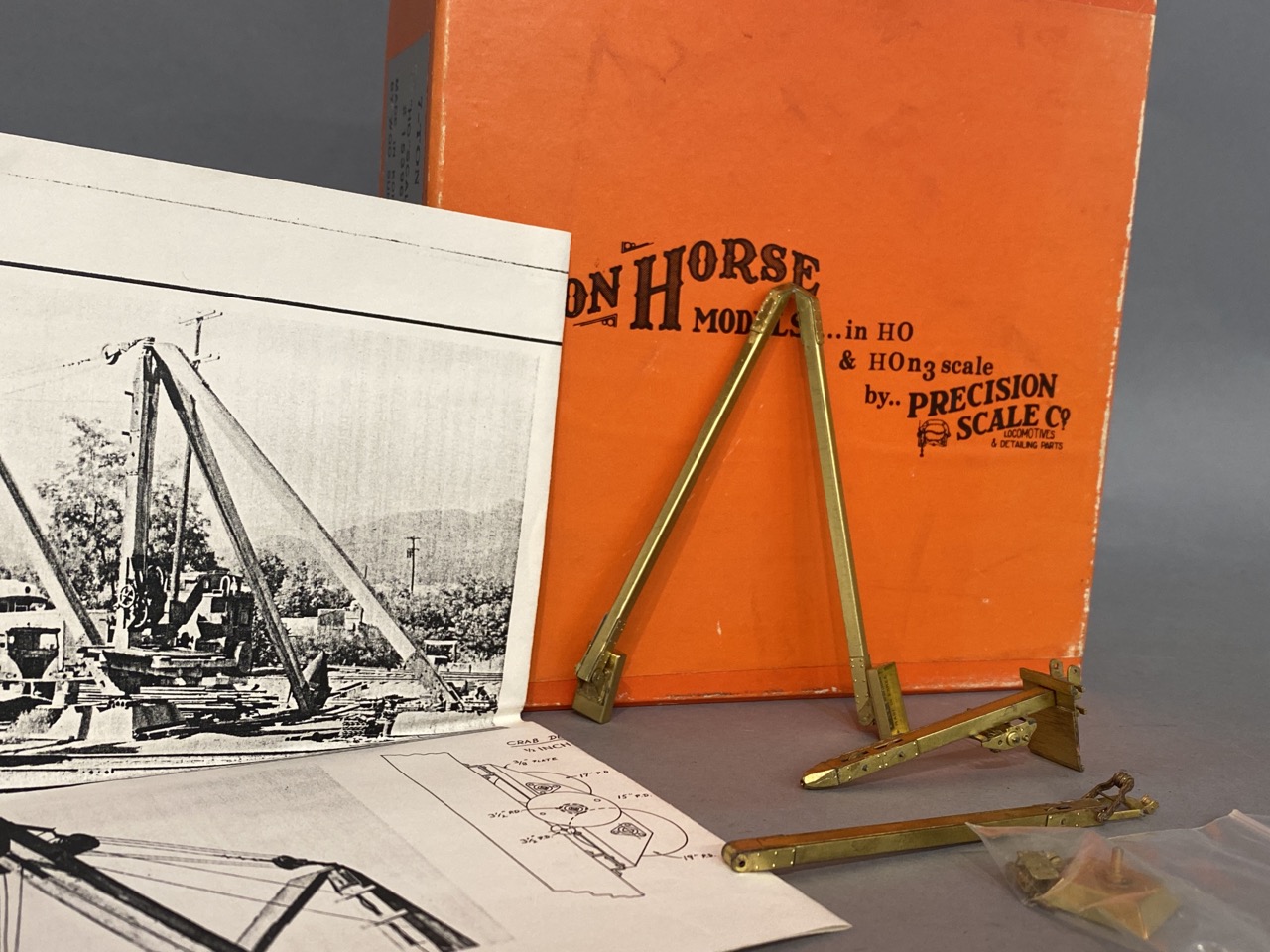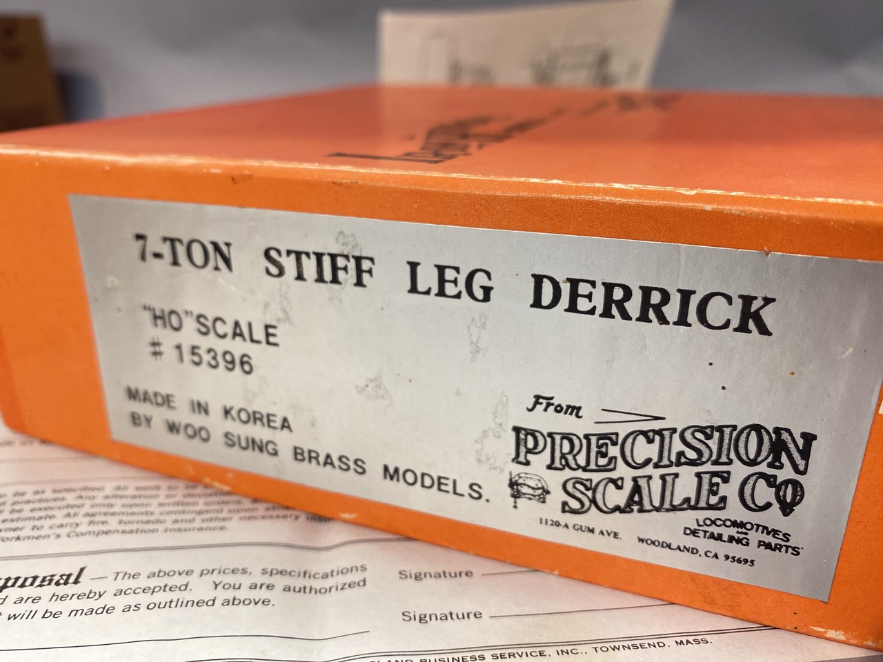 HO Brass 7 Ton Stiff Leg Derek Number 15396. Made in Korea by Woo Sung Brass Models Precision Scale Company.