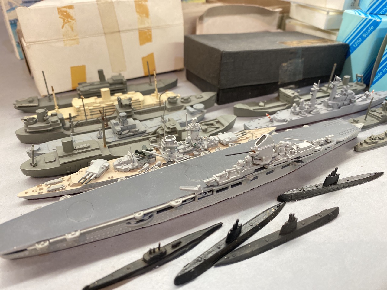 Thirty piece Precision Metal Ship Models. Skytrex, US Nautilus Aircraft carrier etc.