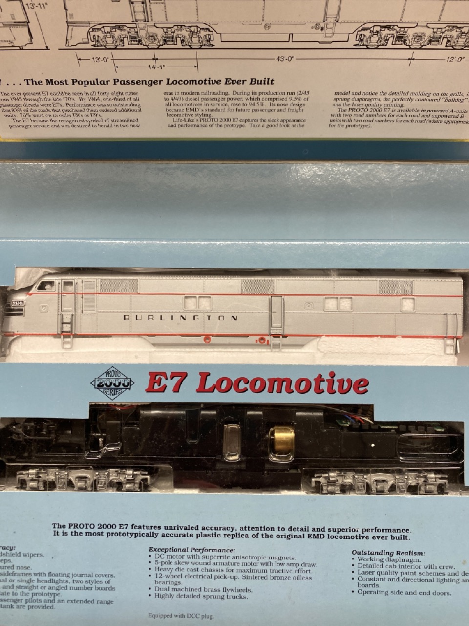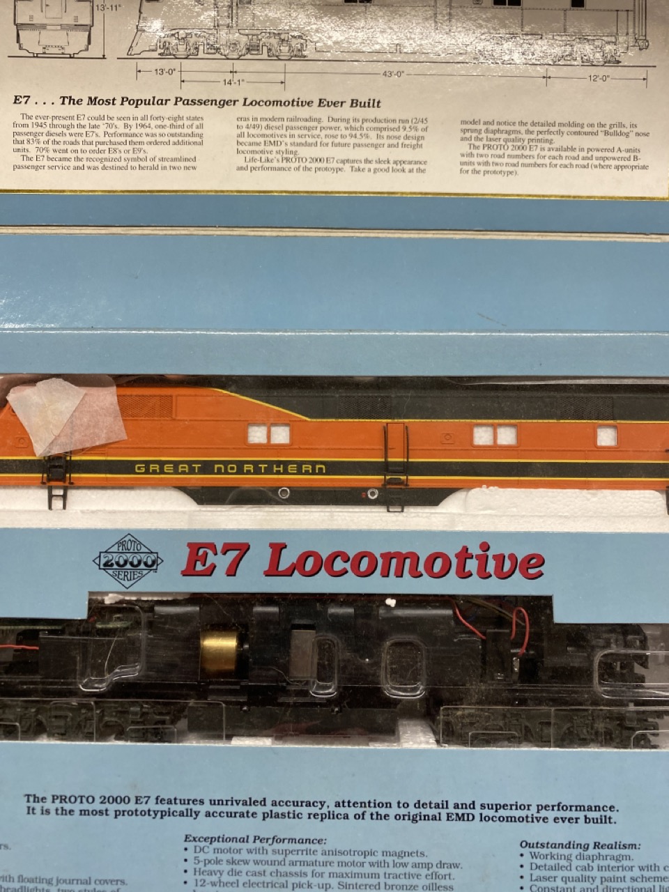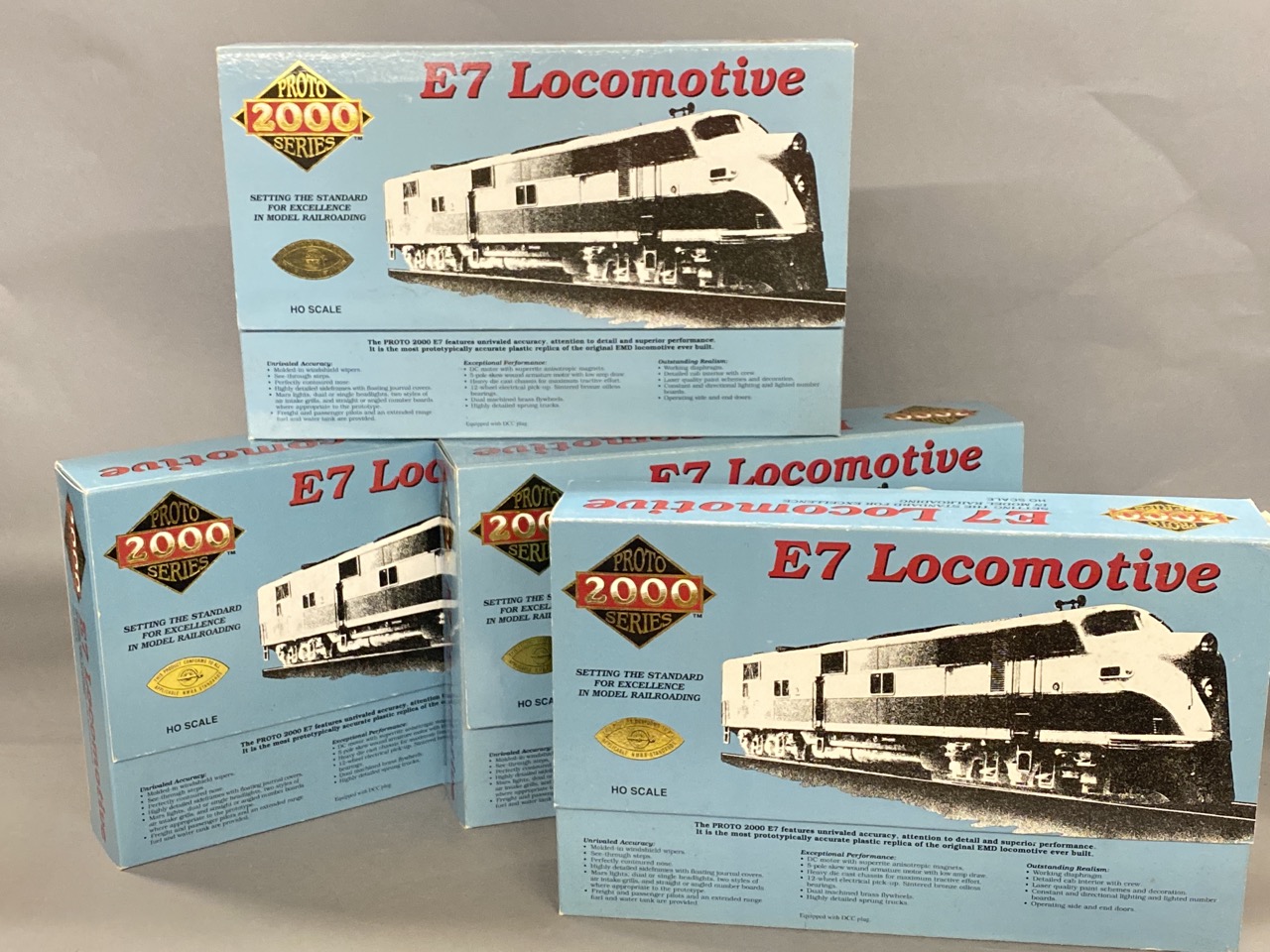 Four (4) Proto Series 2000 E7 Boxed Locomotive Trains. New in Box.