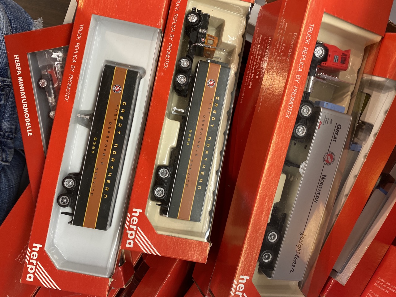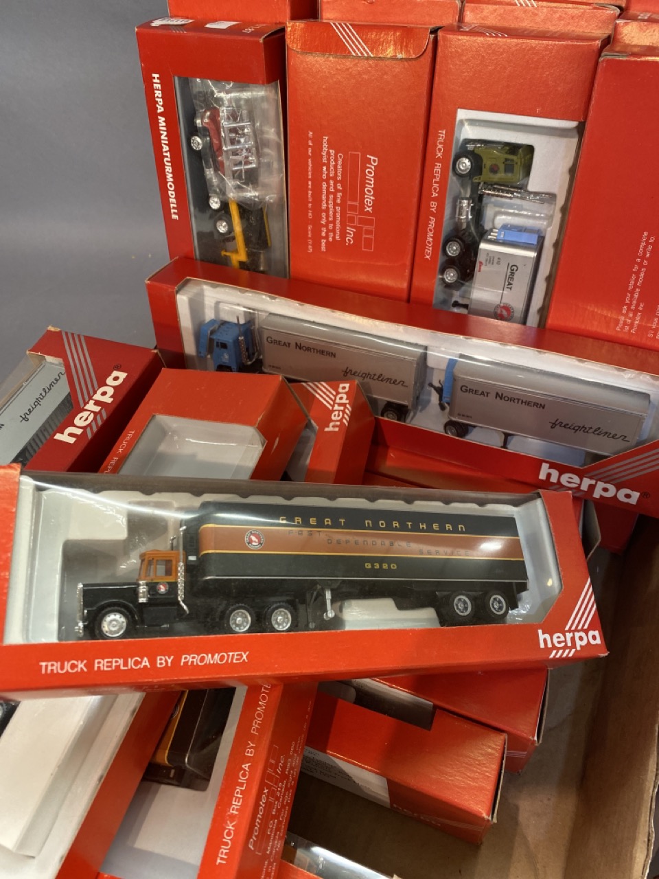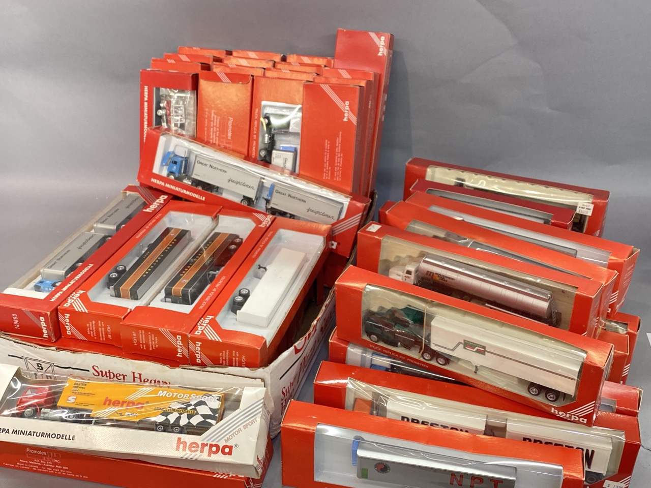Forty-Five (45) Herpa Trucks, Tractor Trailers Etc. Boxed.