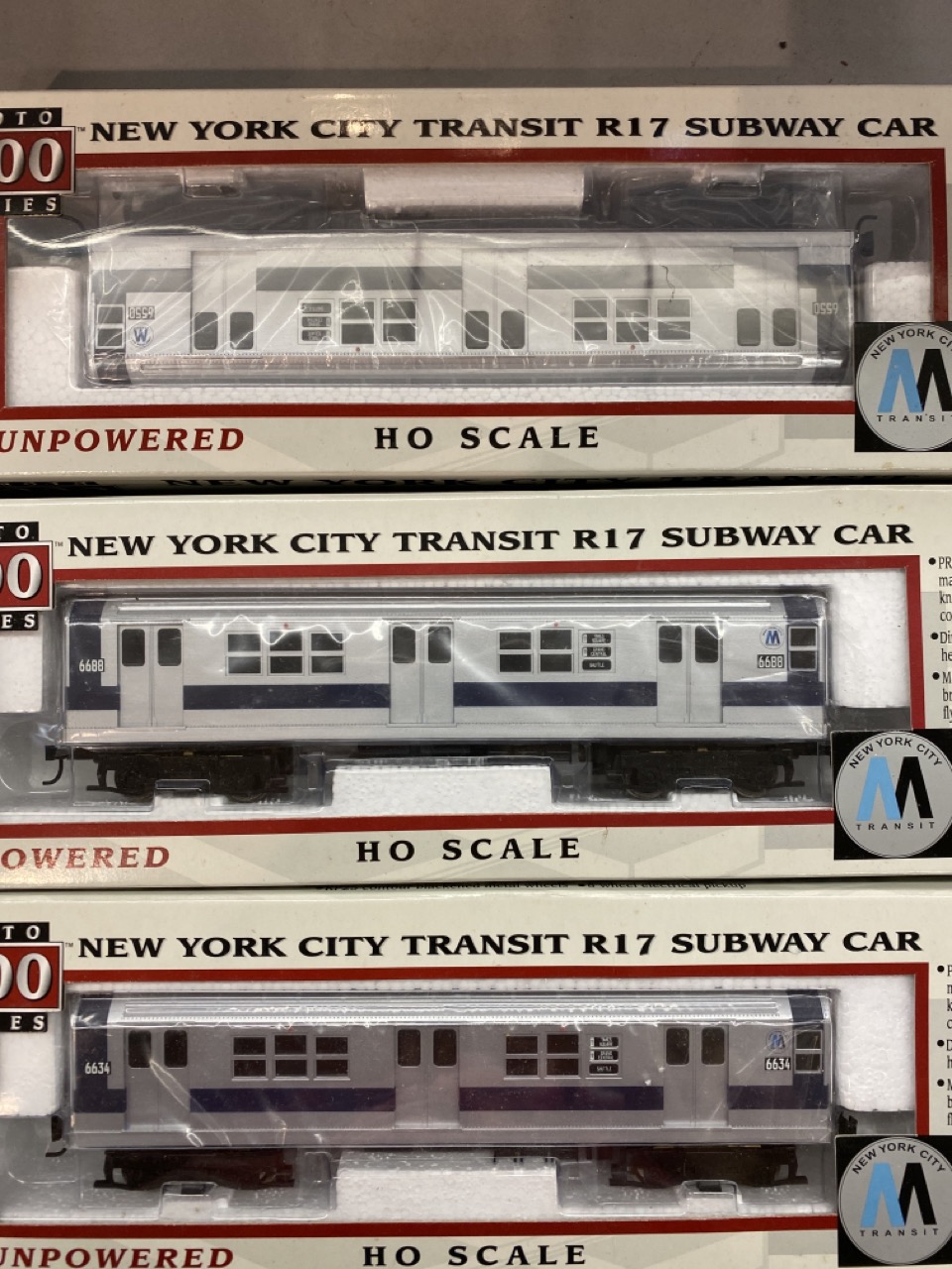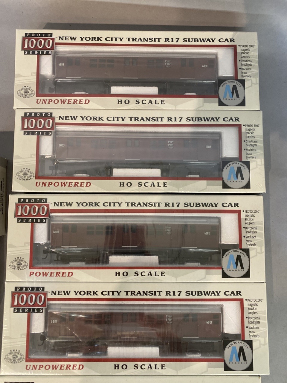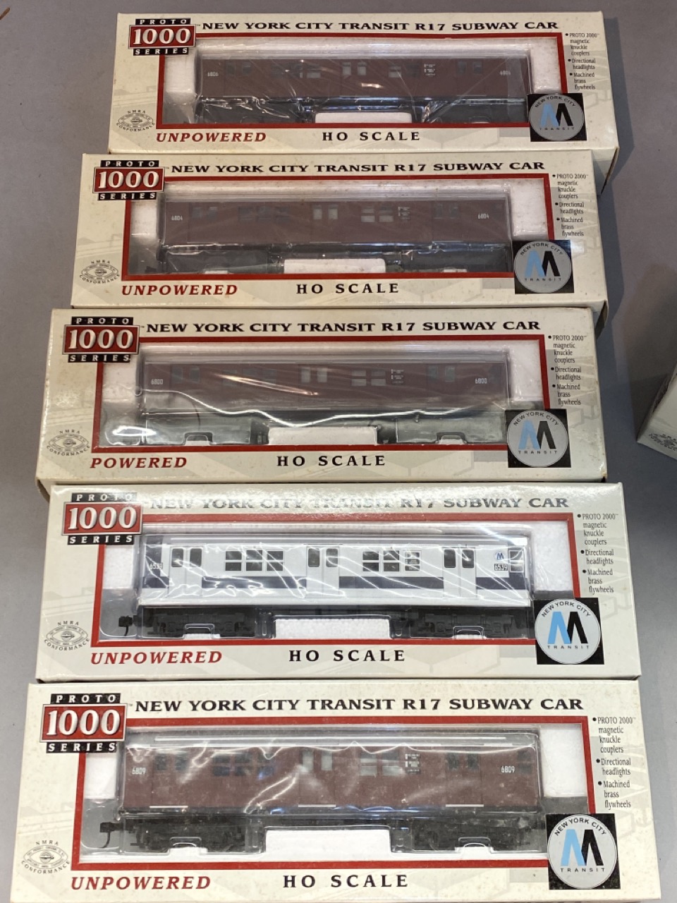 Twelve (12) Proto 1000 Series New York City Transit Subway Cars, Mint Boxed. HO Scale.