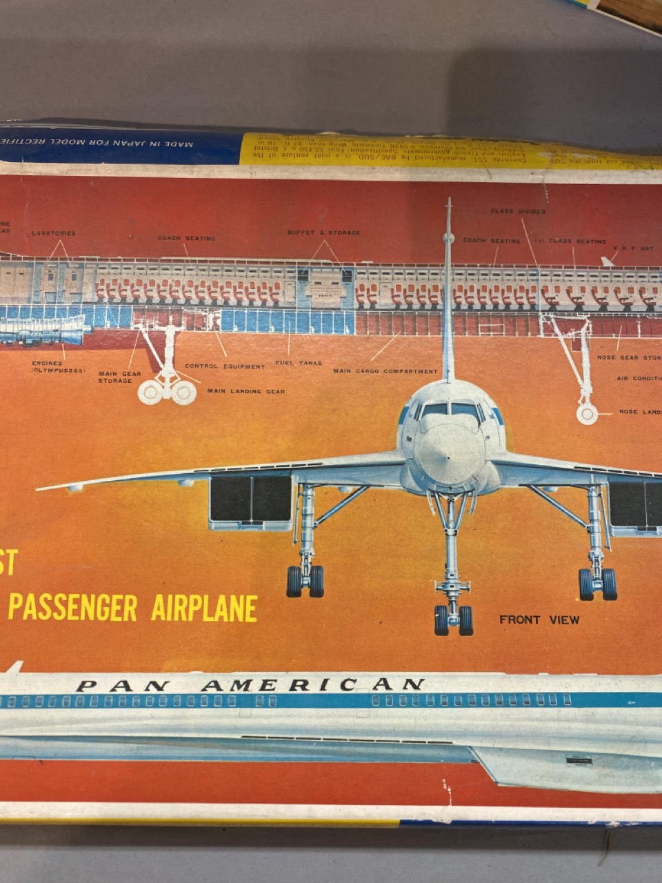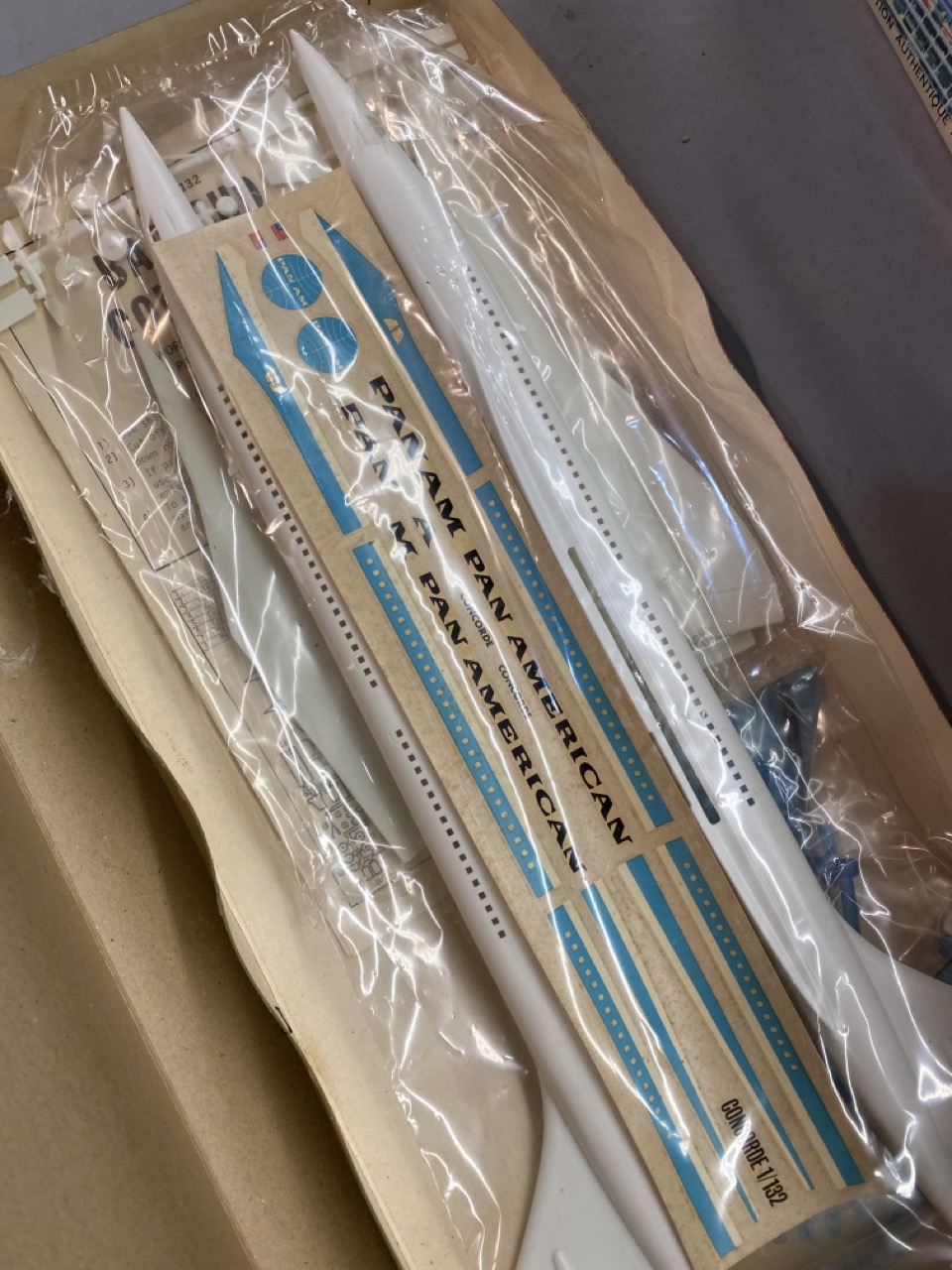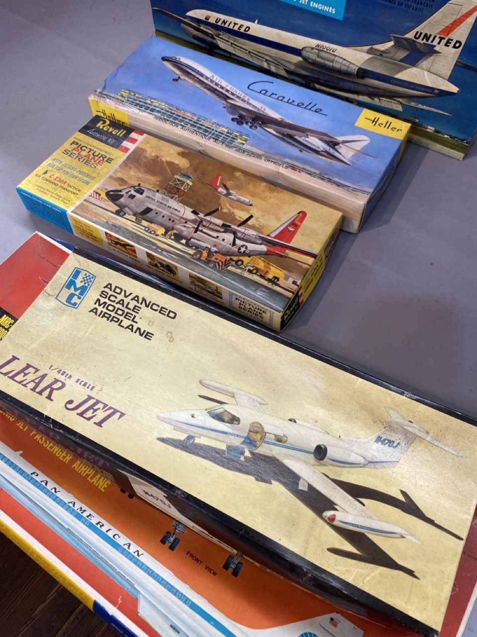Five (5) Airline Models lot 1960’s Era Heller Caravelle, Air France,, Pan American Concorde Revell US Air Force, Lindberg line Caravelle United Airlines and Advanced Scale Model airplane Lear Jet N470 J