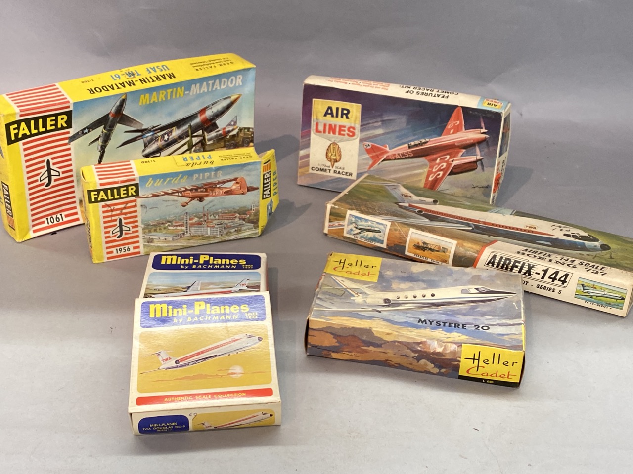 Seven (7) Vintage airplane models Bachmann, Heller Air Fix, comet racer by airlines and two quantity Faller German Berta Piper and Marten Matador planes.
