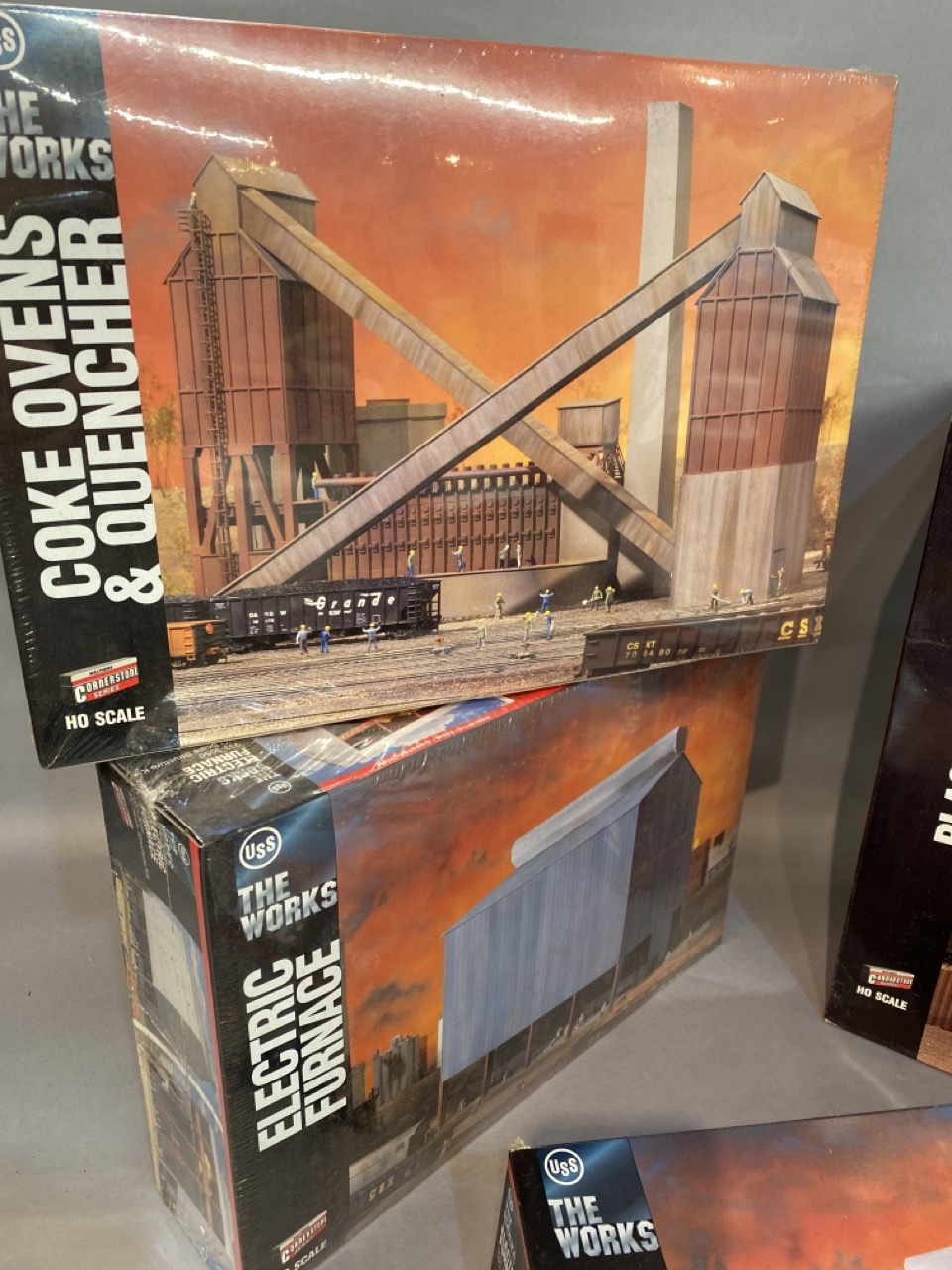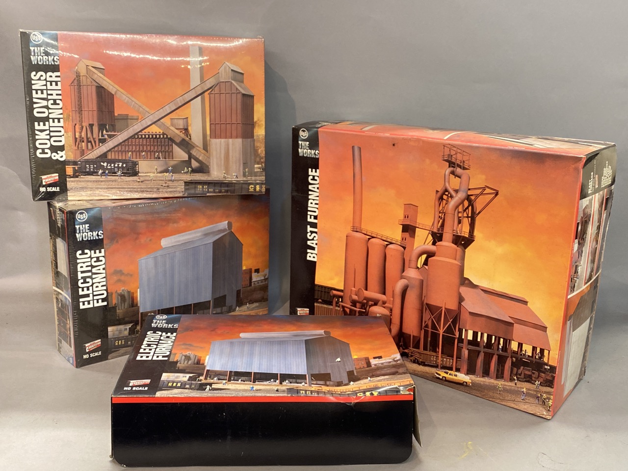 Four (4) USS The Works Walther’s Cornerstone HO Scale Models Electric Furnace, Blast Furnace and Coke Over Quencher.