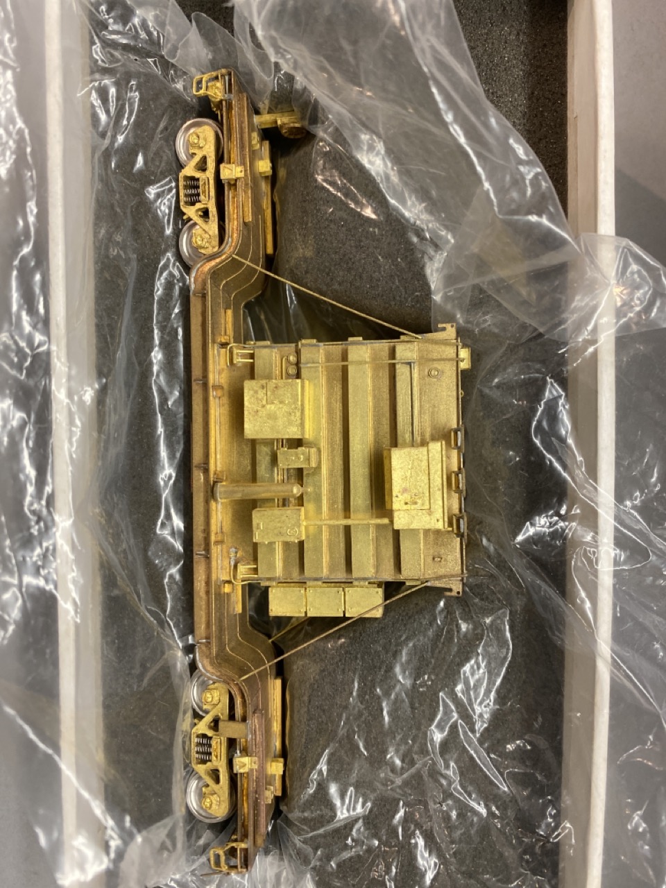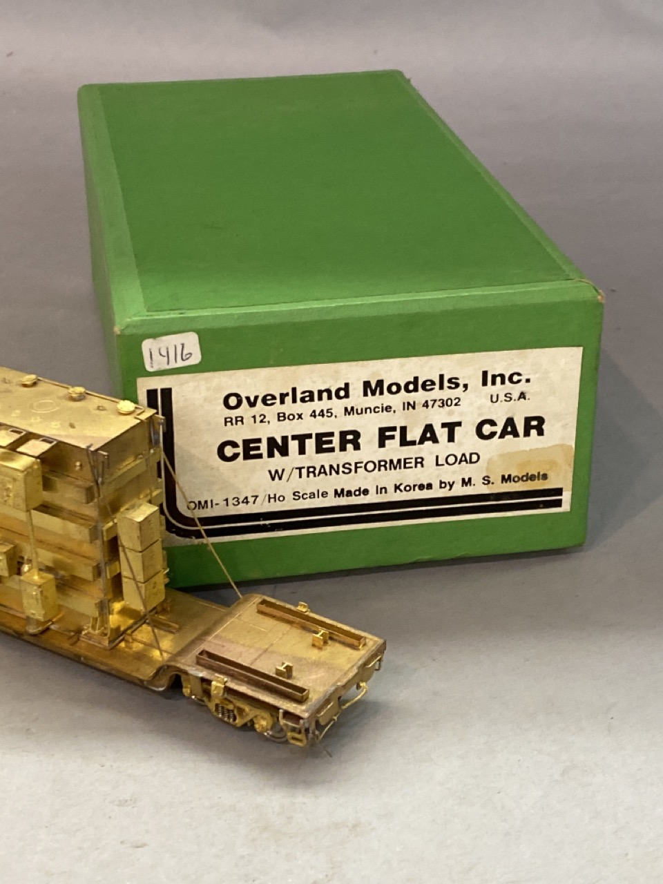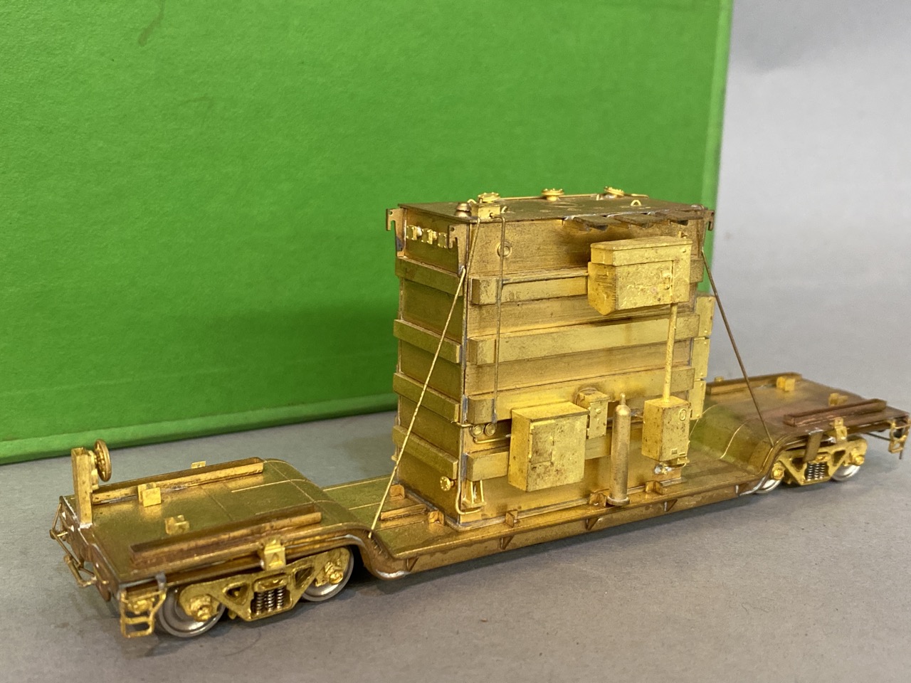 Overland Models Center Flat Car w/ Transformer Load. Brass.