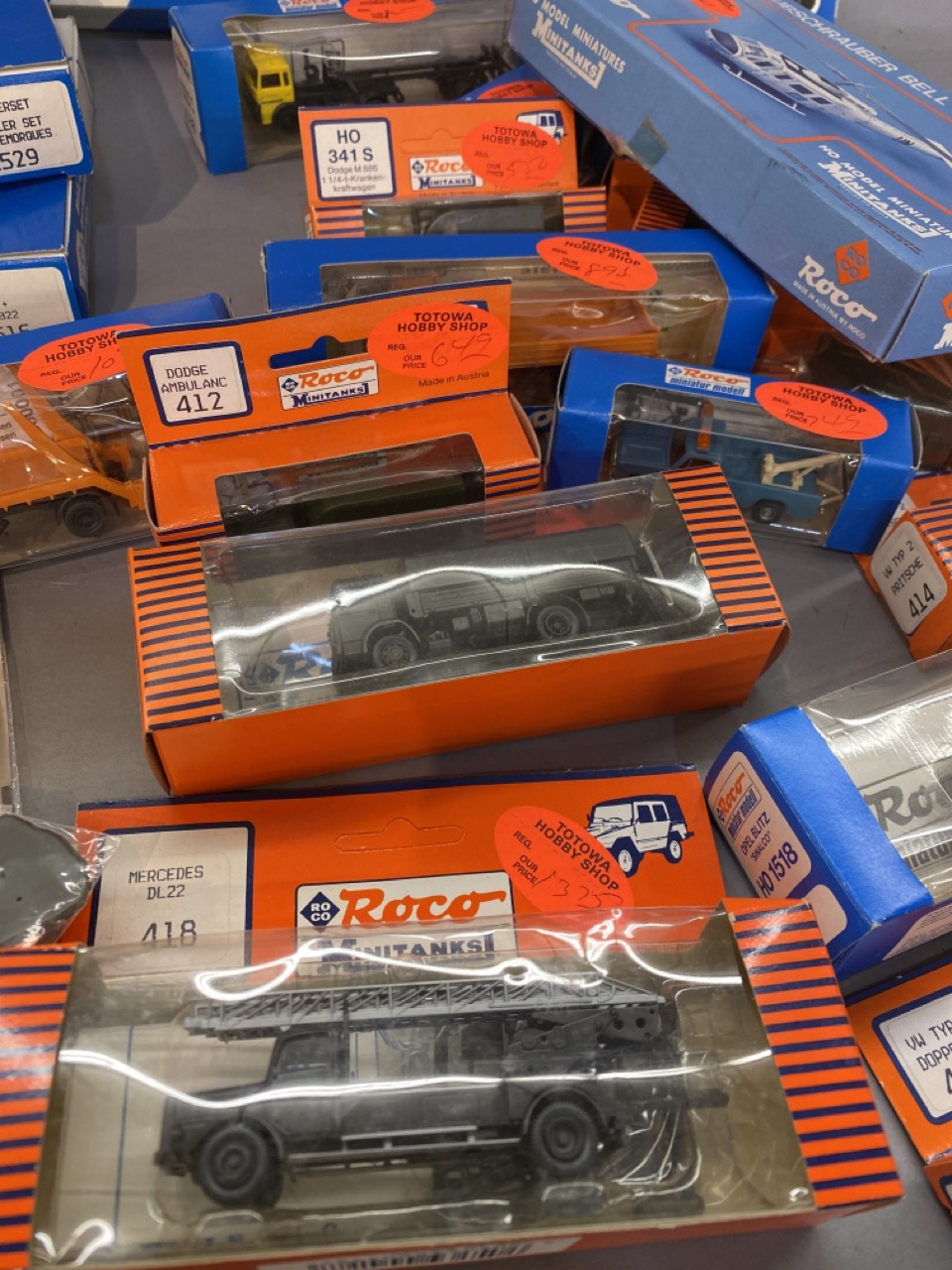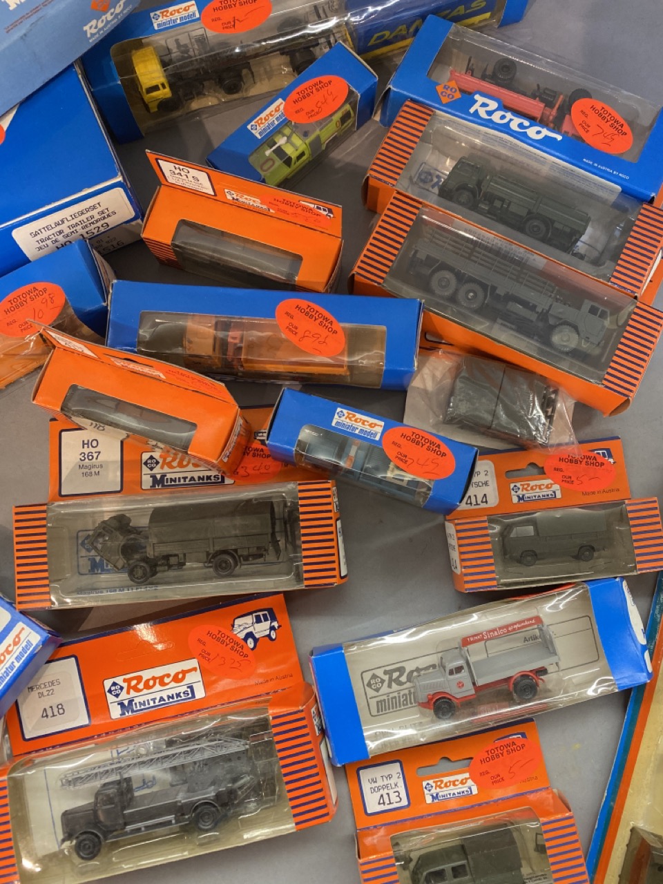 Roco Made in Austria Mini tanks accessories helicopter container crane for shipyard etc. proximately 28 pieces