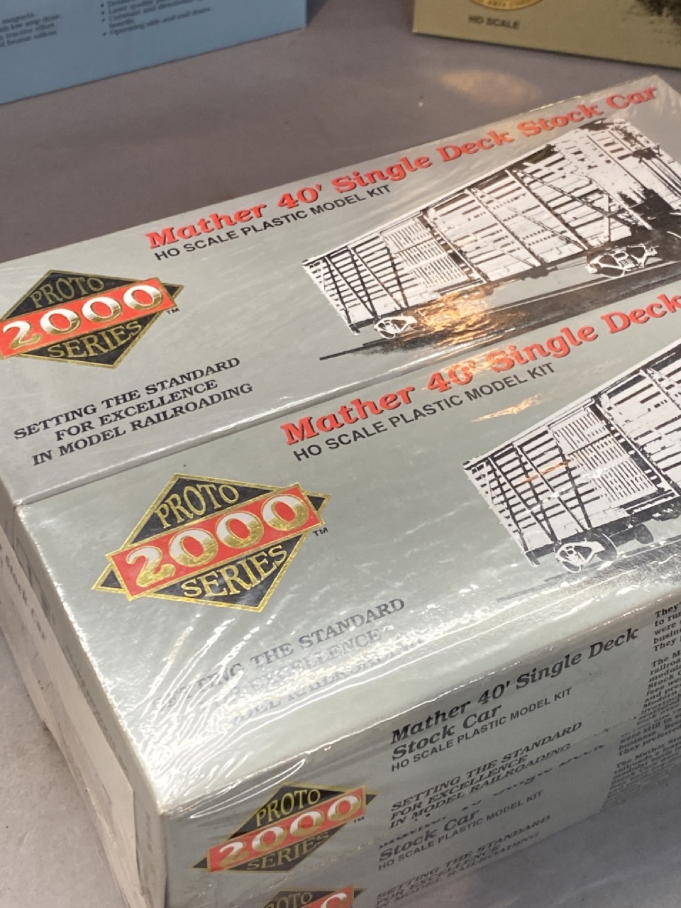 Proto 2000 Series 12 piece FA2, BL2, E7, master 40 foot single deck stock car and 52’6” drop and mill gondola HO scale