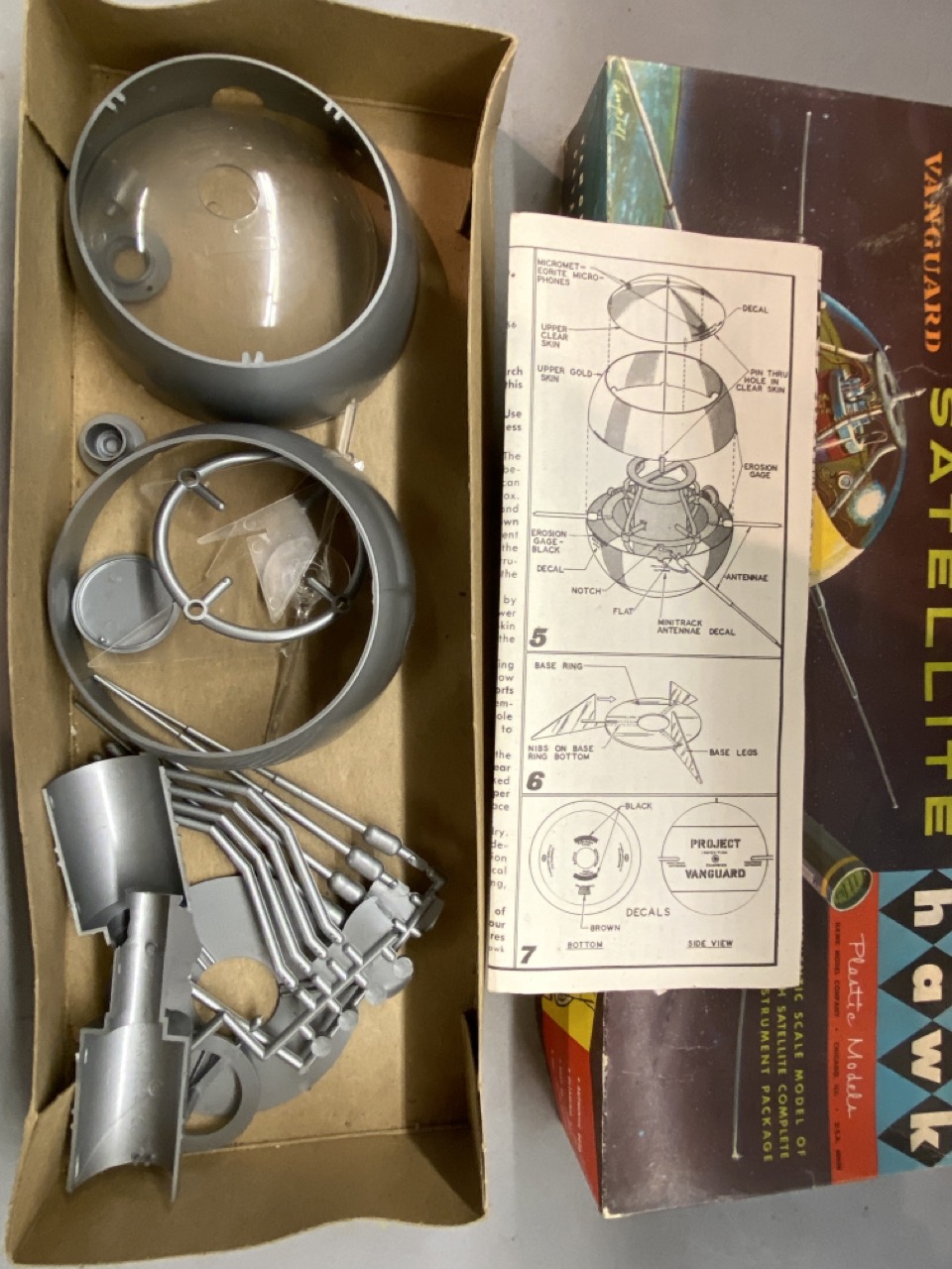 Project Vanguard Satellite Hawk Model Company Space Model 1960’s in original box. Unused.