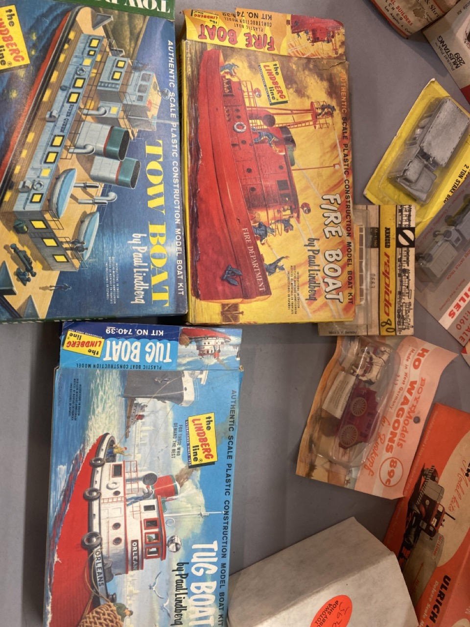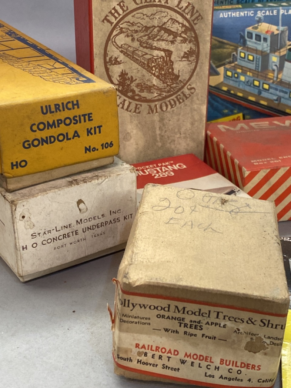 Ulrich, Boyd, Walker, HOLLYWOOD, The Cliff Line, Lindberg Line boat models, Star Line Models, Mew and Kamp. Some boxes soiled, boat models complete but have open flaps. Please see photograph preview or call.