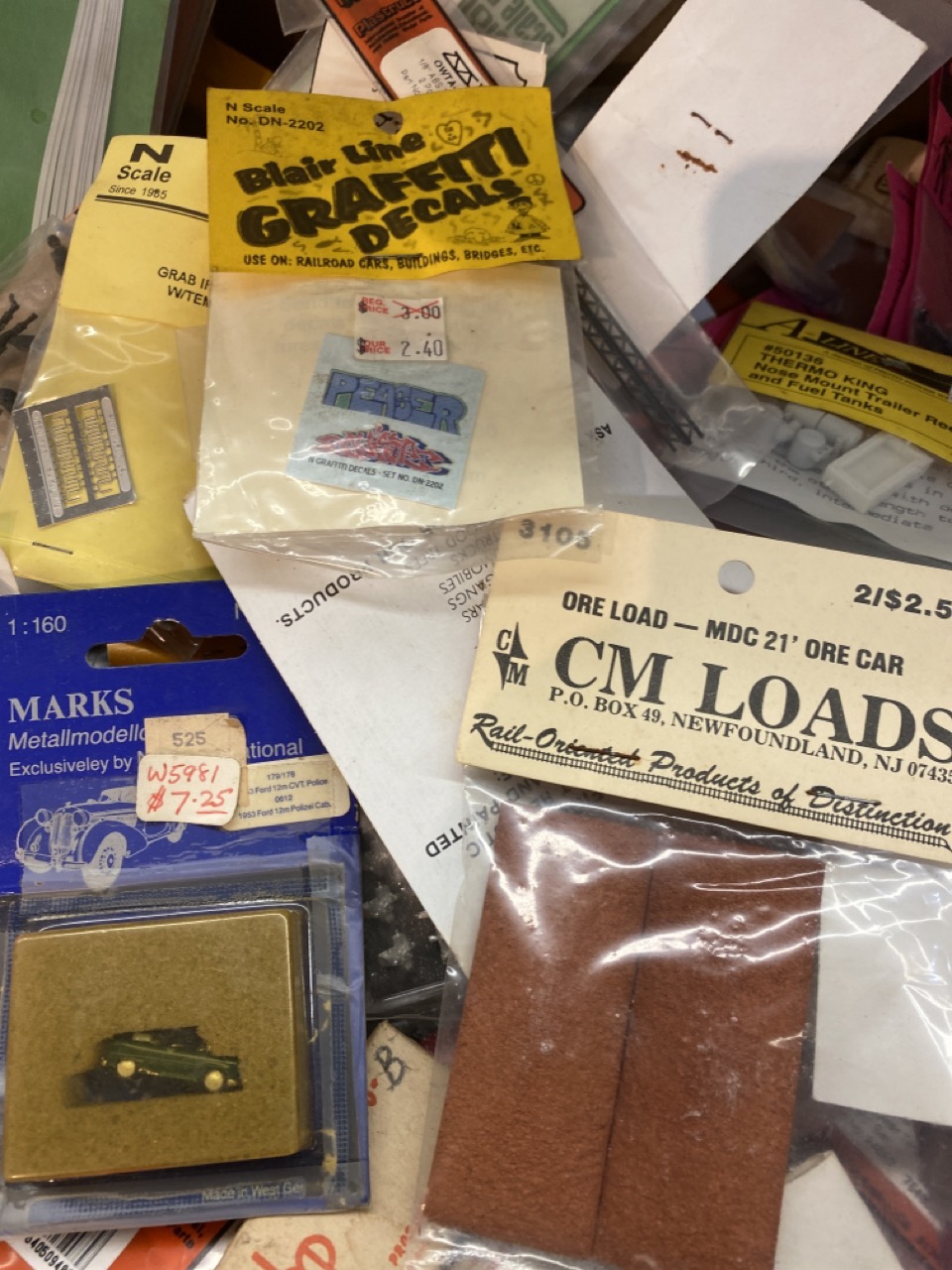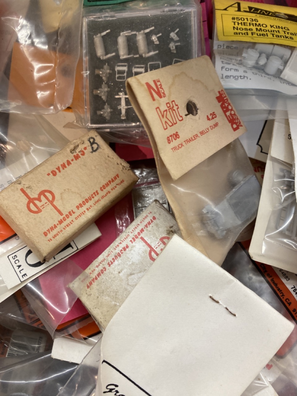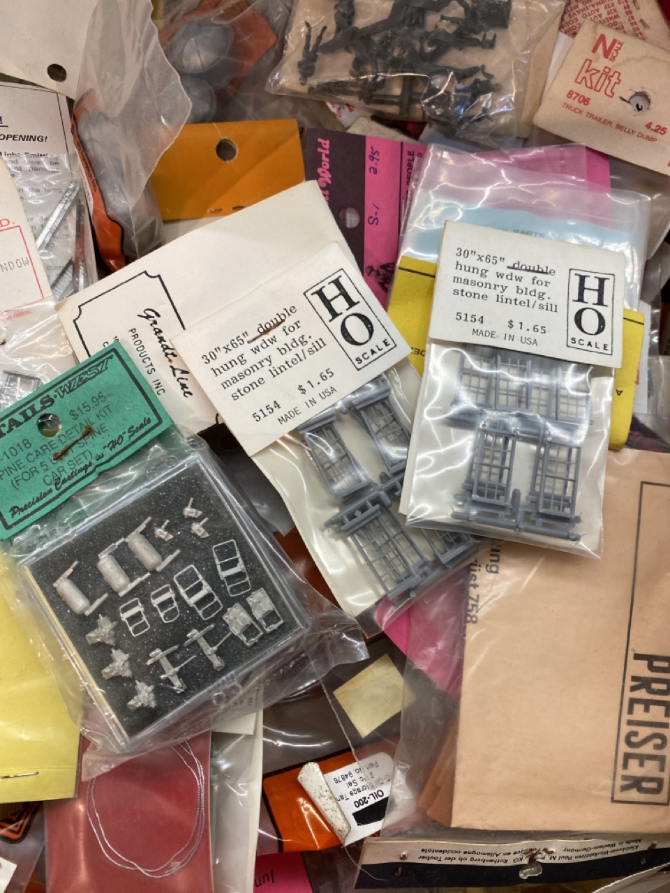 100 piece HO accessories new/old stock packages. detna-mo, Jone’s Small world, Geandt Line, Preiaer, Scale Structures Ltd, Chooch Enterprises, Details West etc.