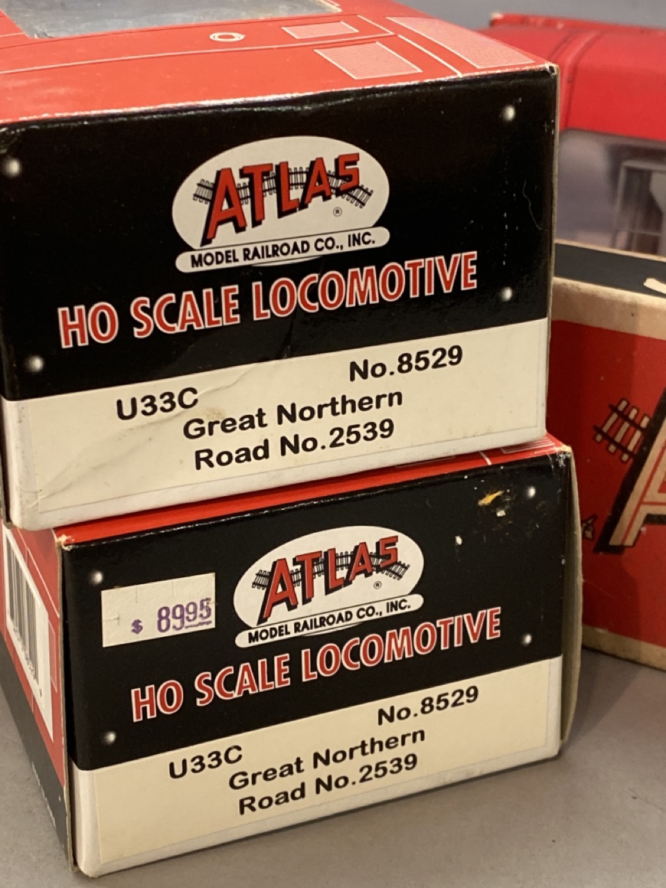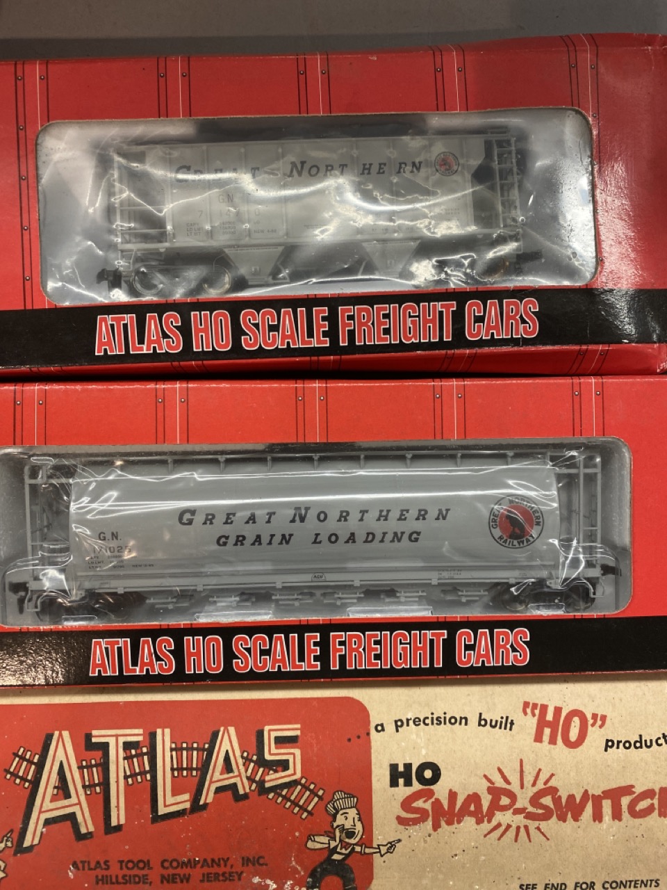 Atlas HO Trains 2 pieces no 8549 Great Northern and two hopper car, snap switch.