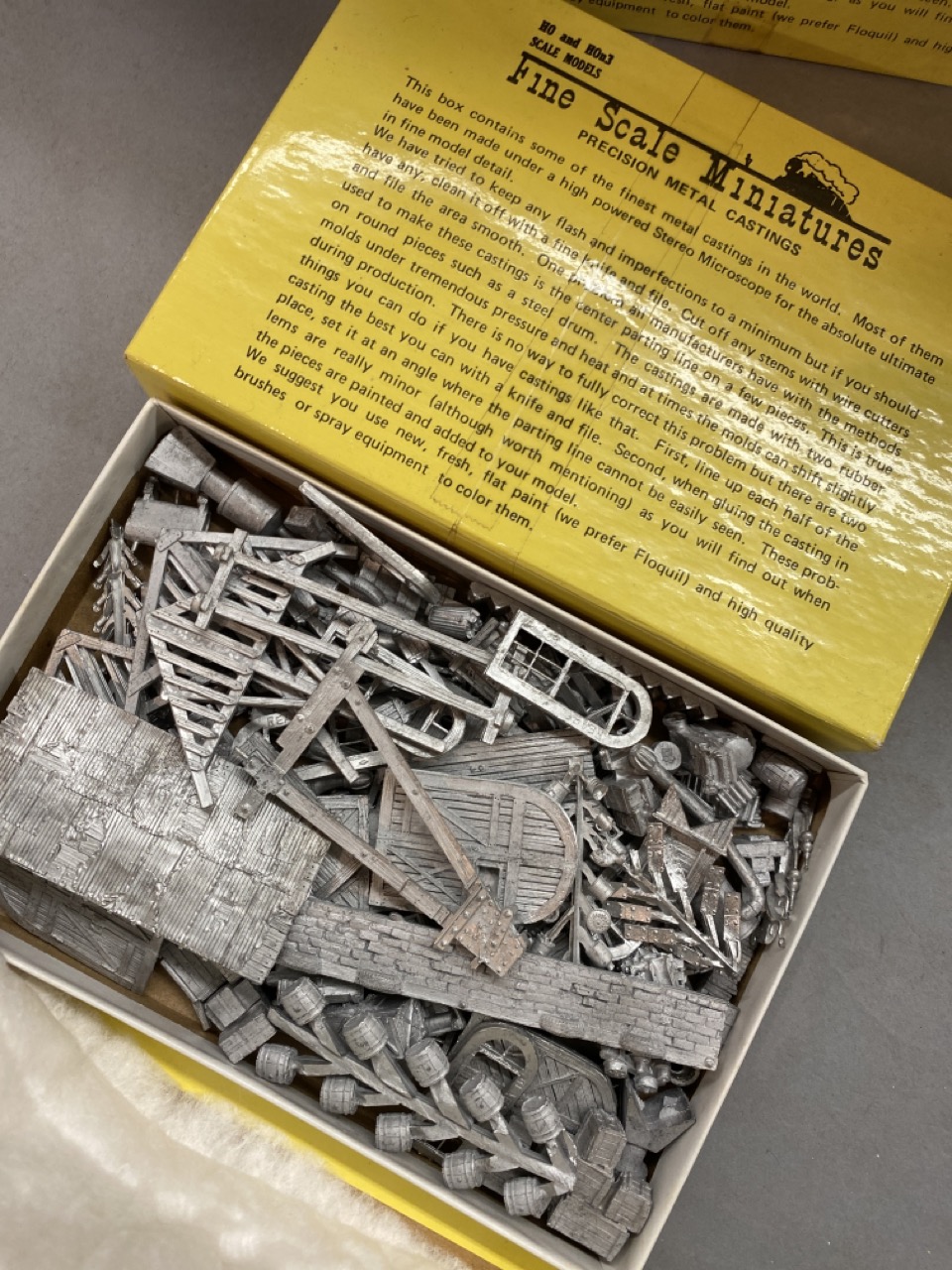 Six piece lot of boxed Fine Scale Miniatures precision castings and unused model sets.