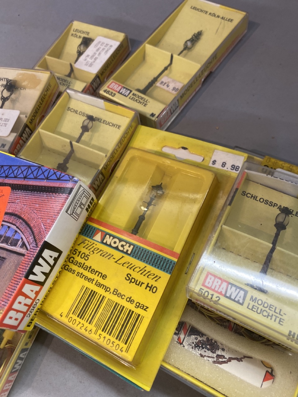 Sixteen (16) Piece Brawa German HO scale miniature accessories