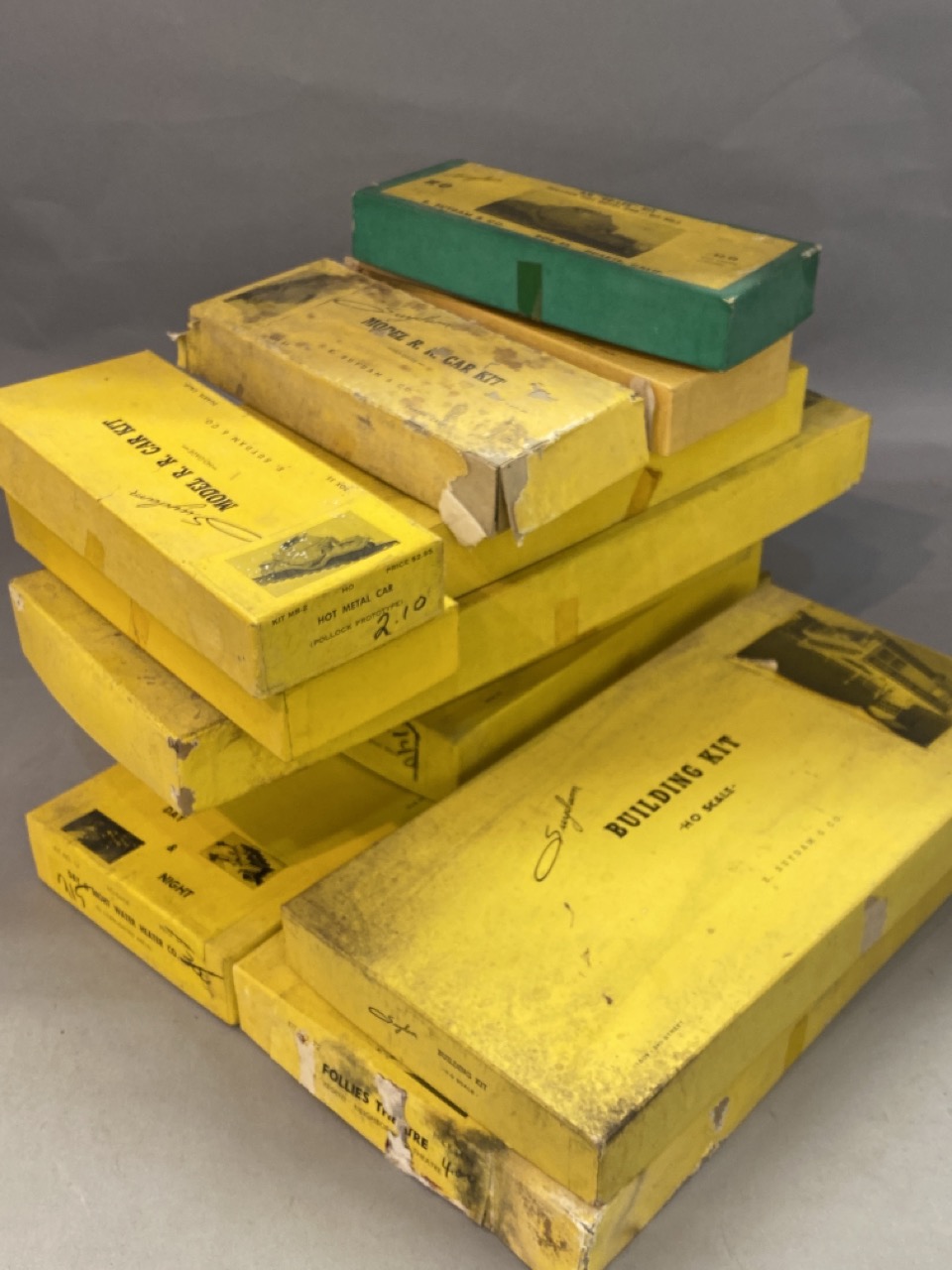 Twelve (12) Suydam HO Scale Model Kits Soiled and ripped boxes, models are unused and all appearing complete.