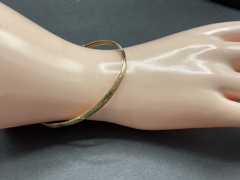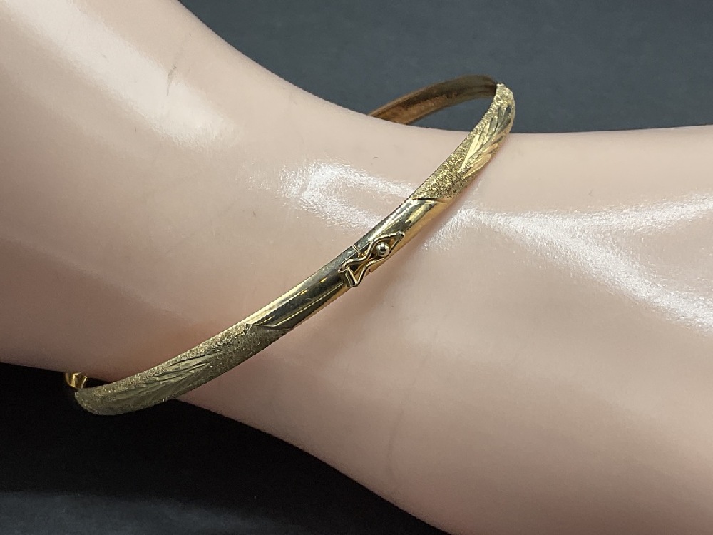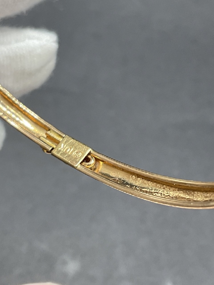 10K Yellow Gold Etched Lady's Bangle Bracelet with clasp.
