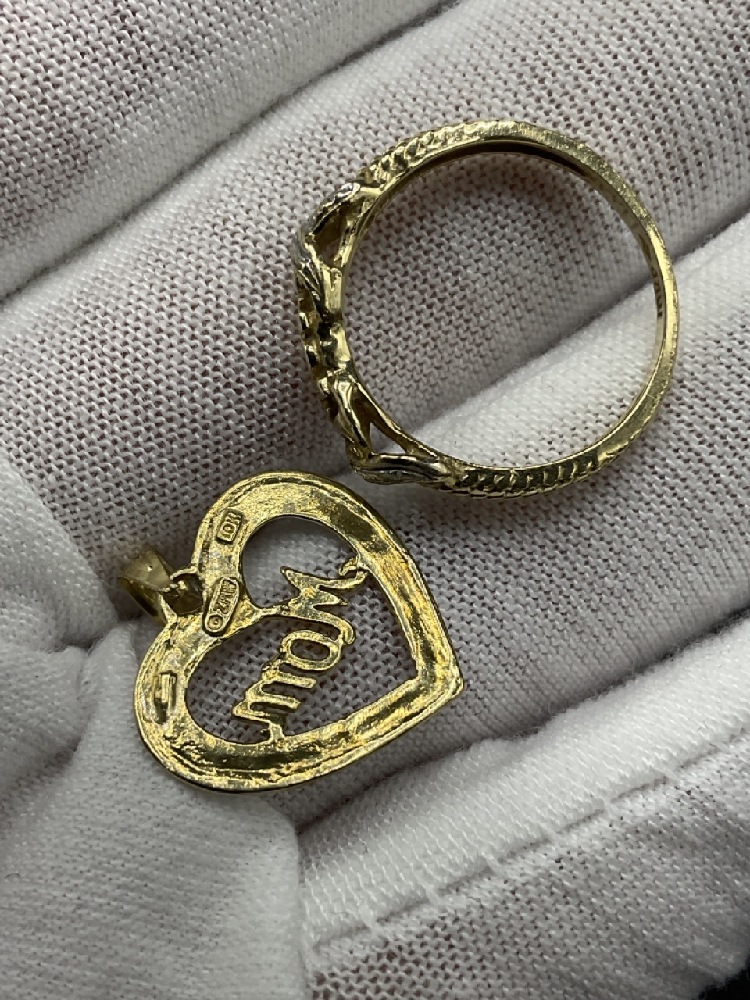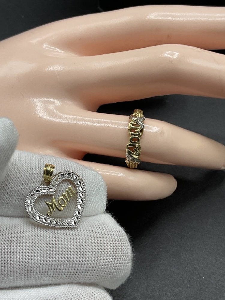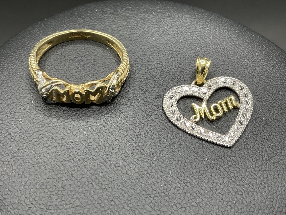 Two (2) 10K Yellow Gold "Mom" Pendant and Ring.