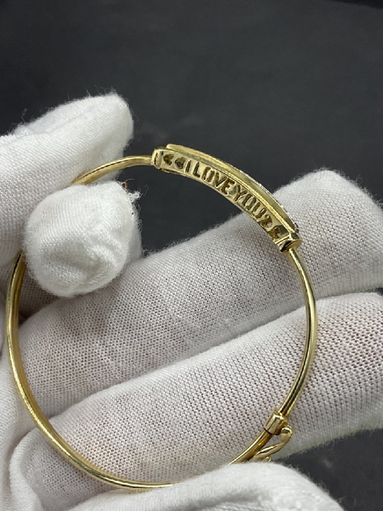 10K Yellow Gold “I Love You” Bangle with Clasp.