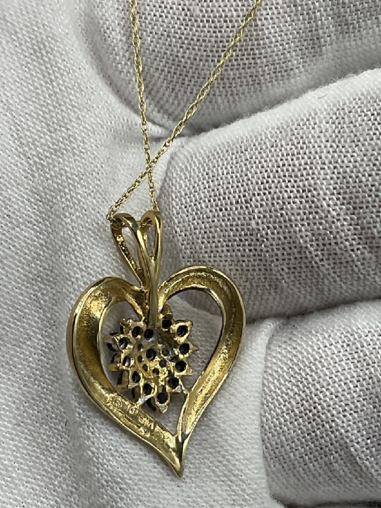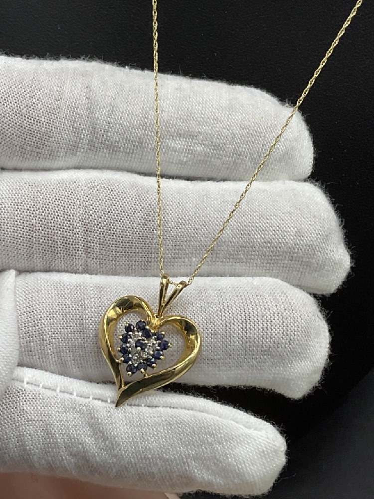 10K Yellow Gold Necklace with Sapphire and Diamond Pendant and 10K Sapphire and Diamond ring.