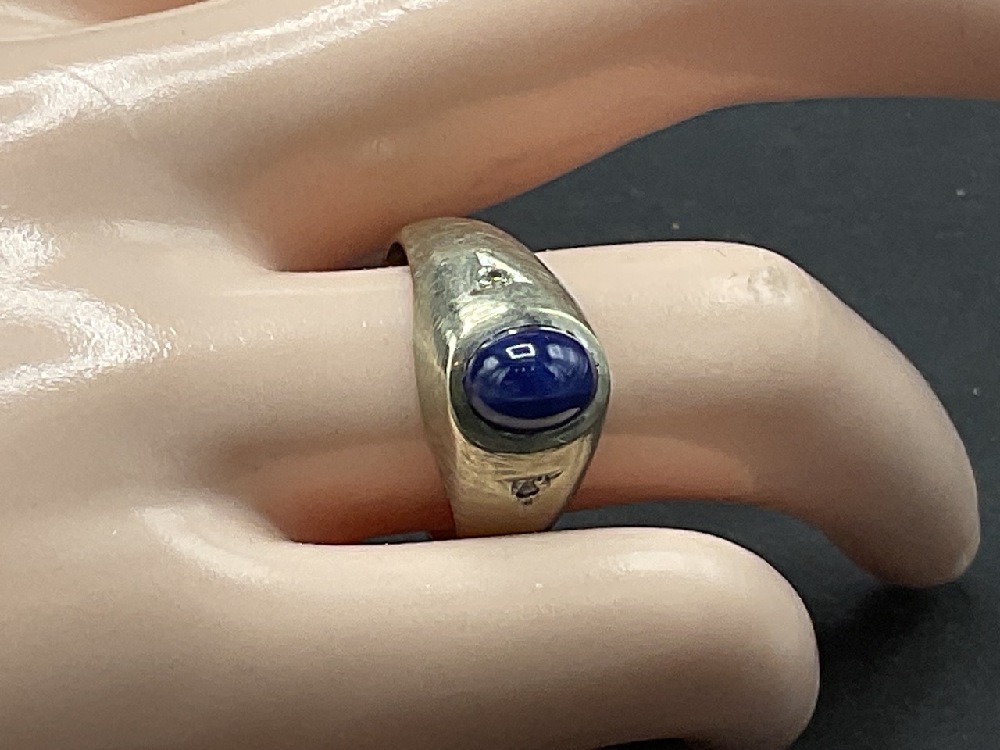 Vintage 14K white gold Star Cabochon sapphire ring with diamonds.
