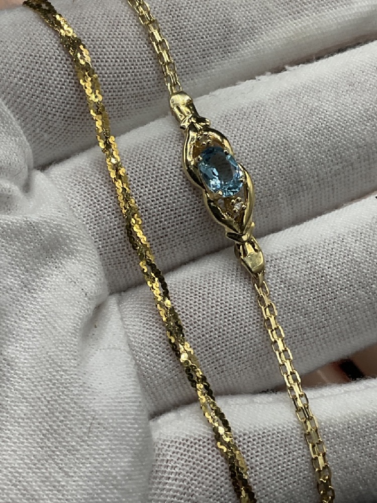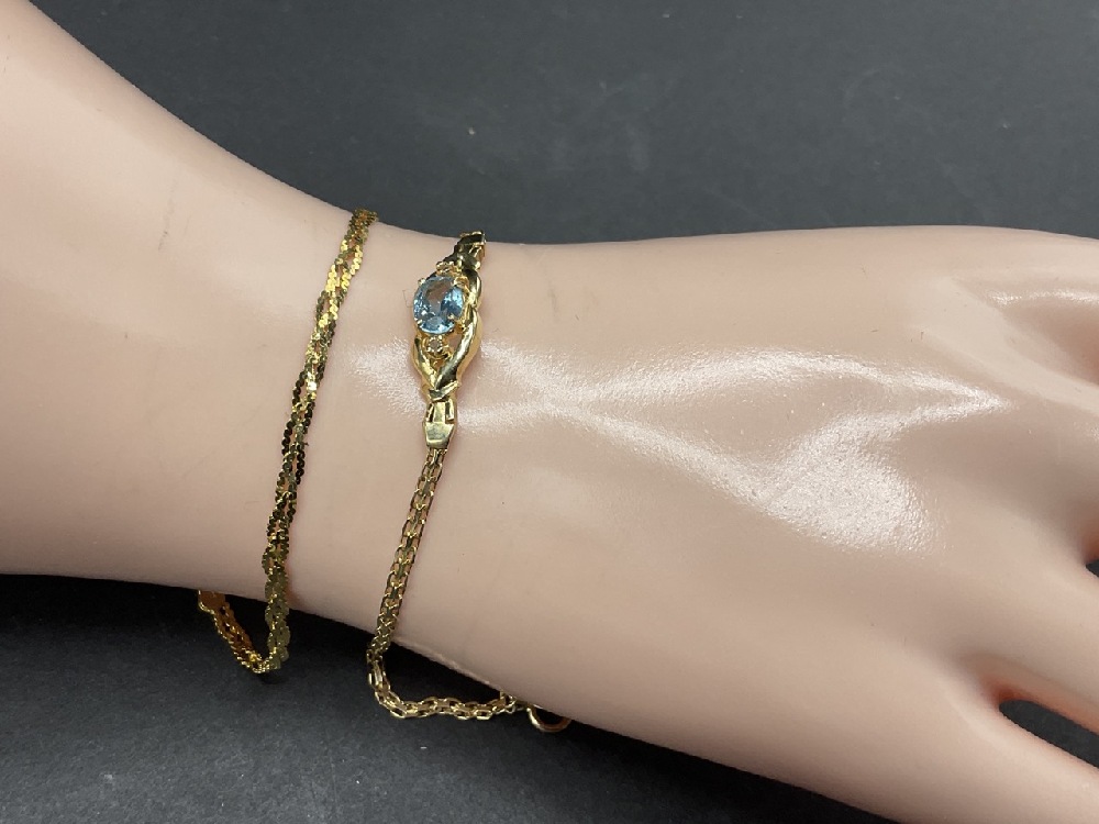 Two (2) 14K yellow gold bracelets. One having blue topaz gemstone.