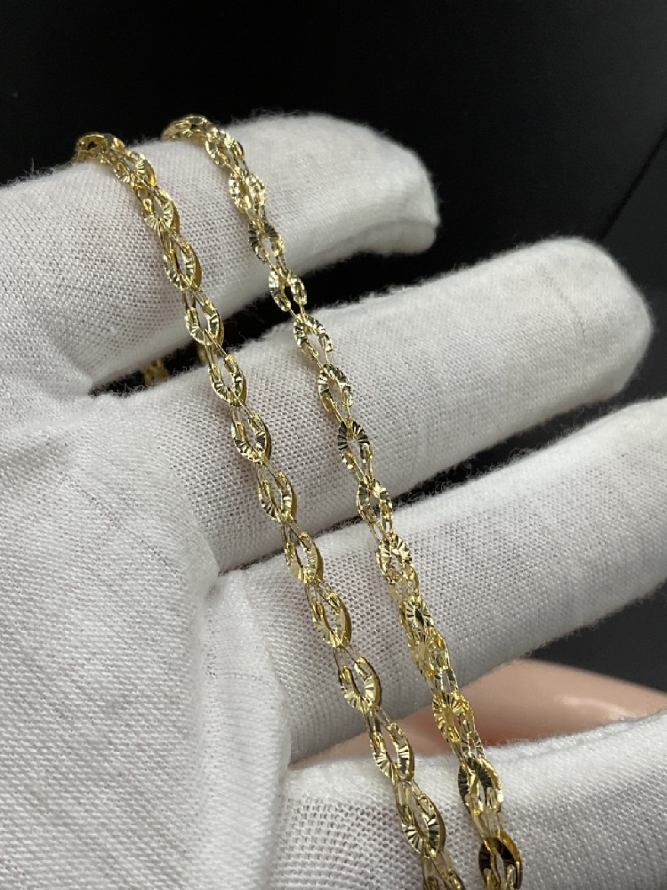 14K yellow gold fancy link necklace.