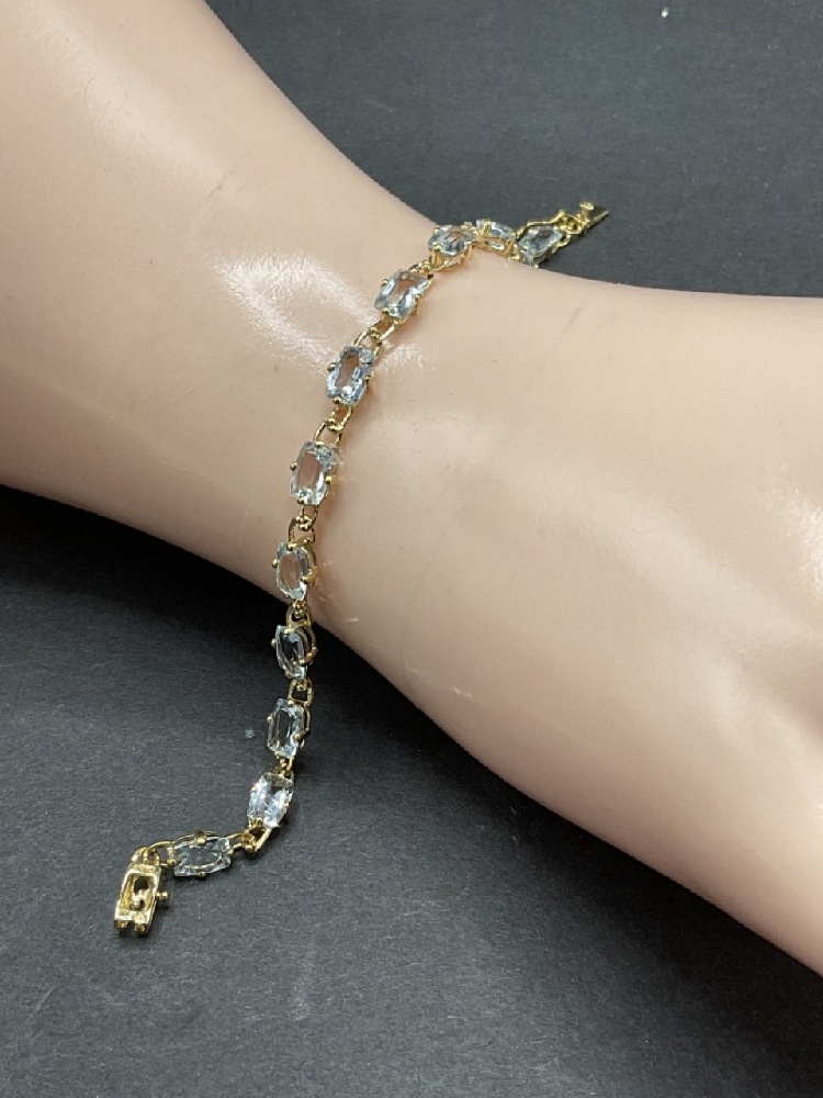 14K Yellow Gold Aquamarine Gemstone Bracelet. 6mm x 4mm stones.