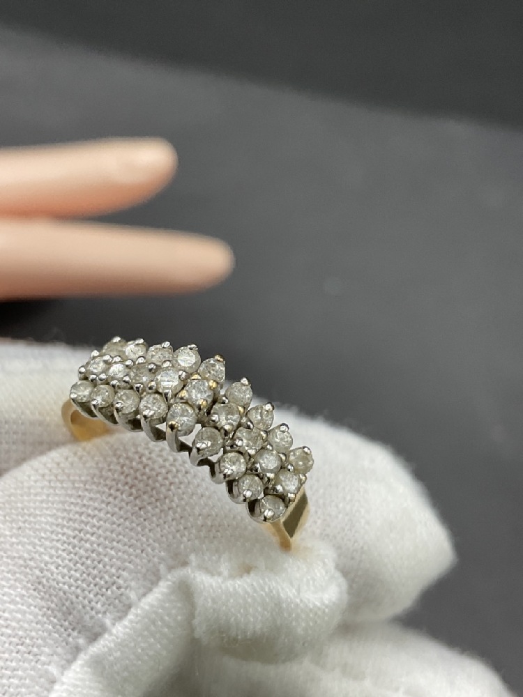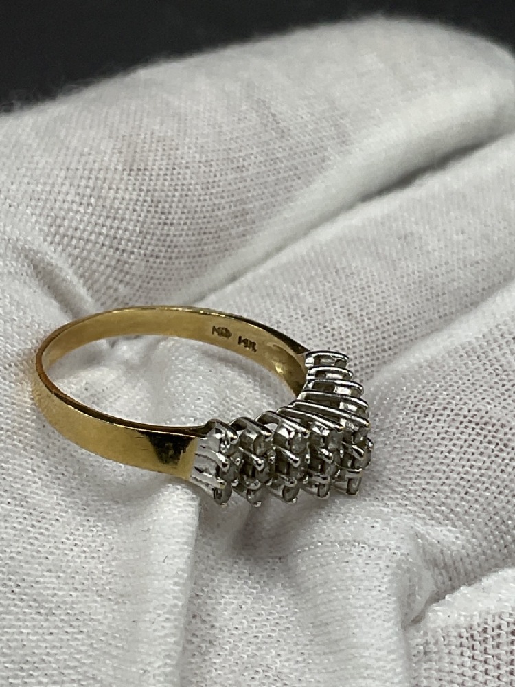 14K Yellow Gold Diamond Ring. Twenty-seven (27) diamonds.