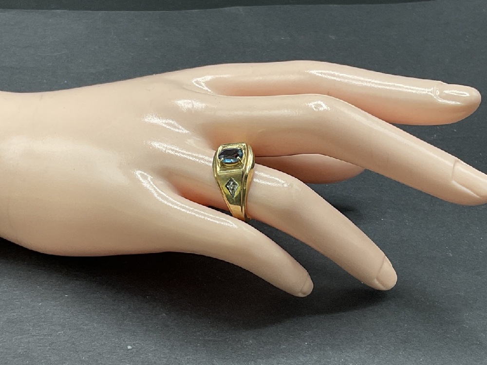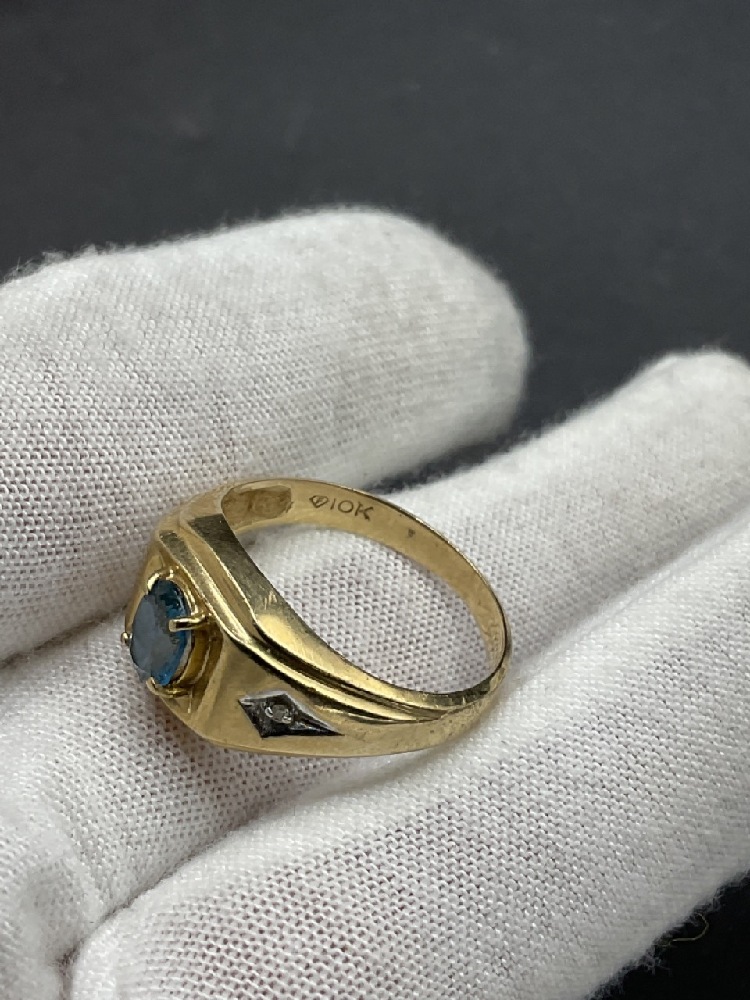 10K Yellow Gold Men's Blue Topaz and Diamond Ring