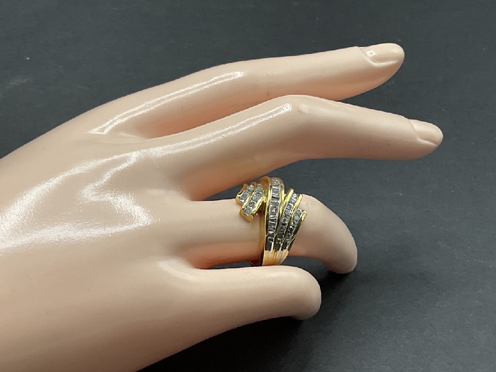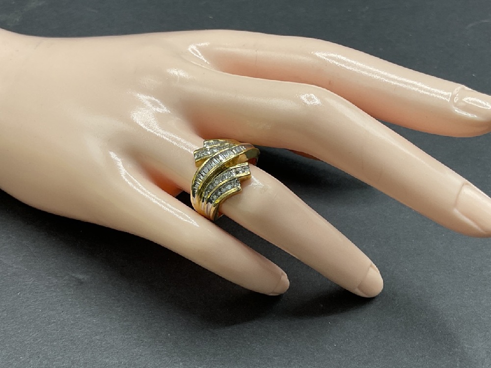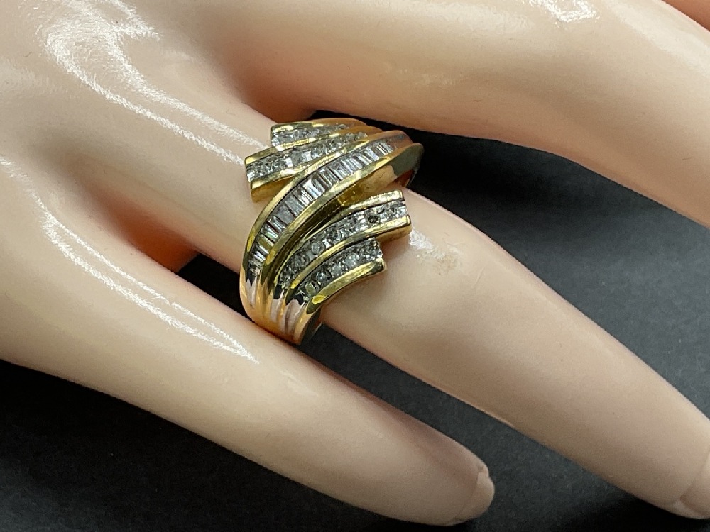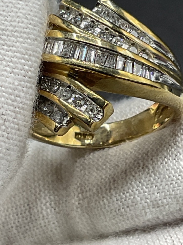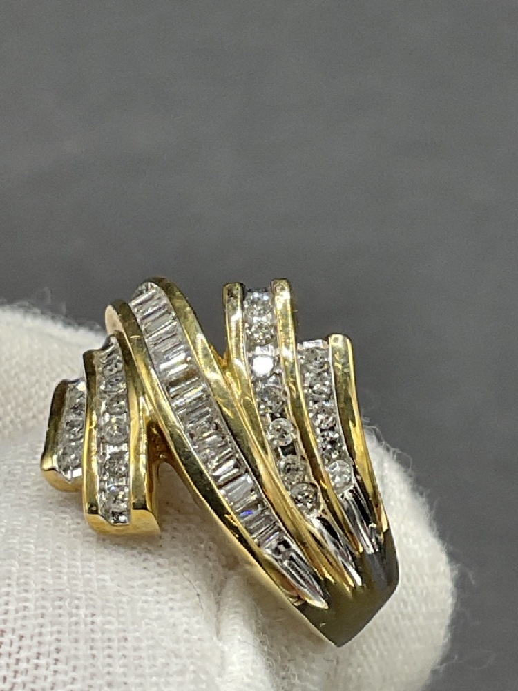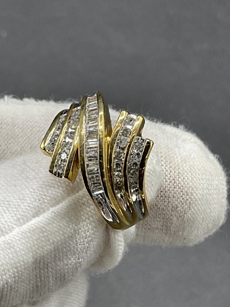 10K Yellow Gold Round and Baguette Diamond Ring.
