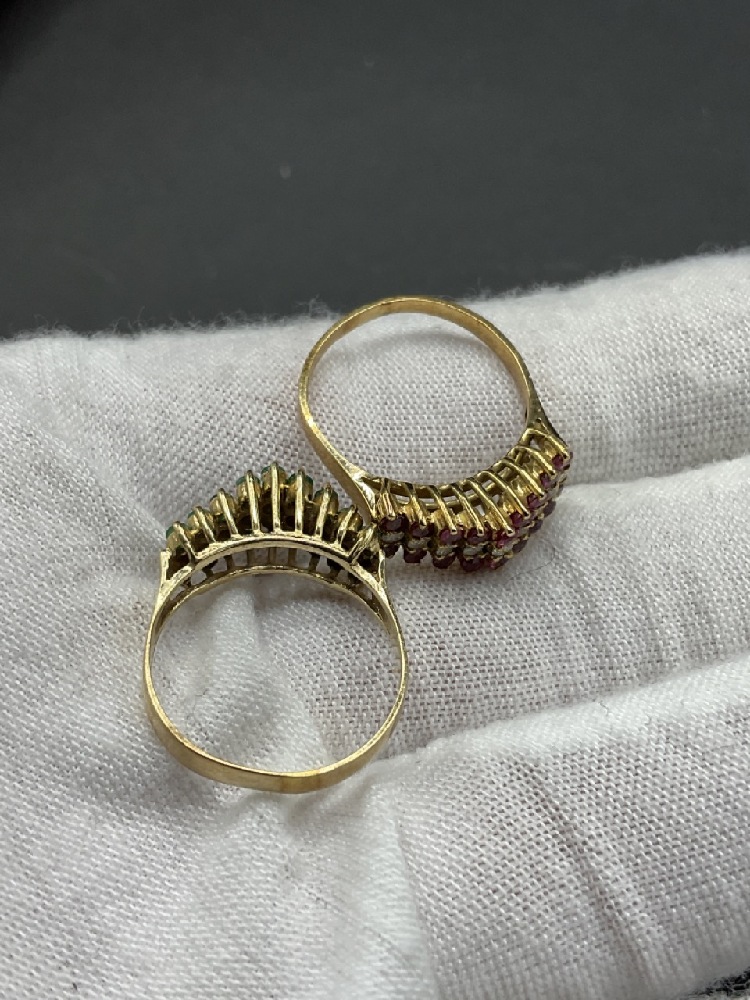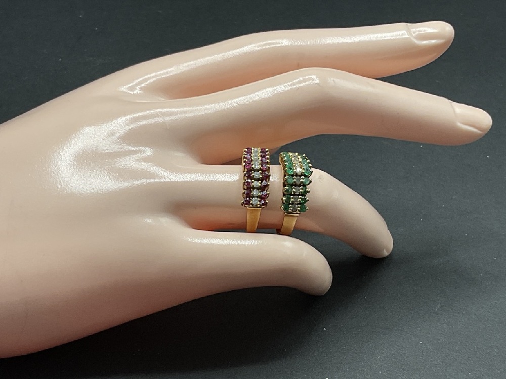 Two (2) matching 14k gemstone rings with Ruby & Diamonds and Emerald & Diamonds