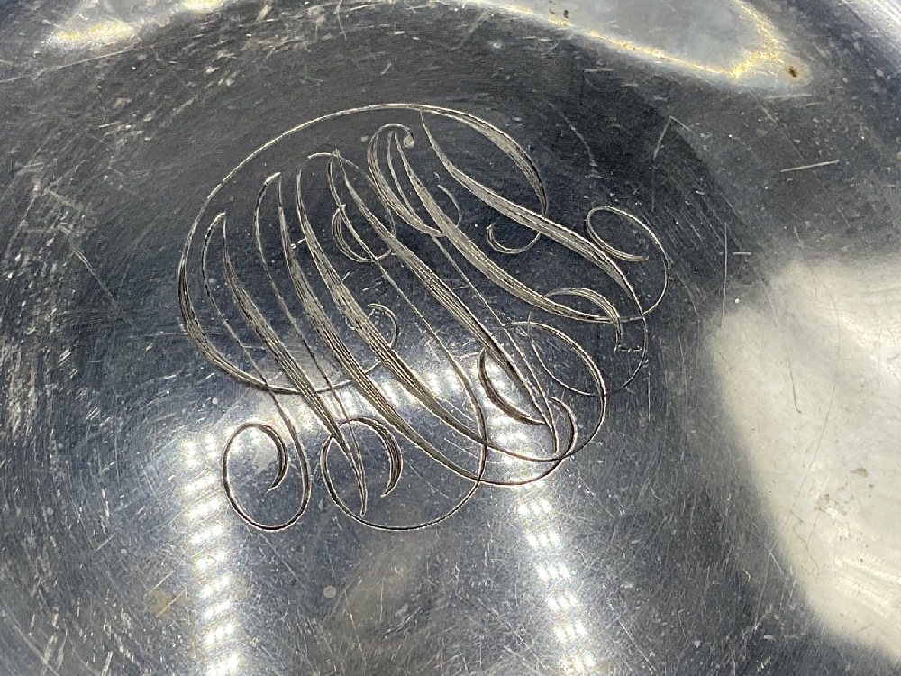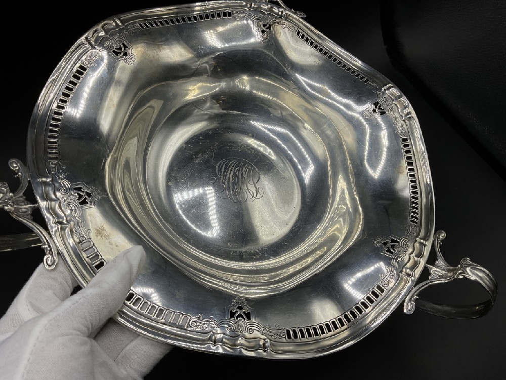 Large Sterling Silver Three Handled Pedestal Serving Bowl.