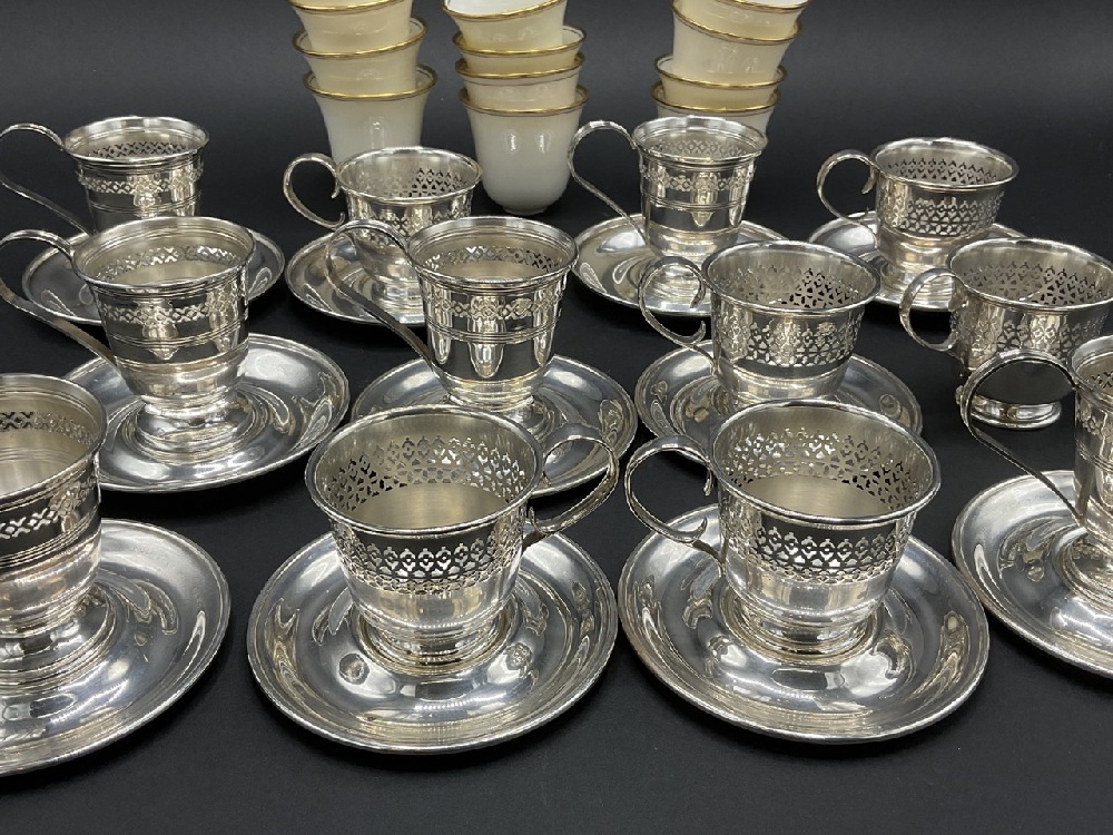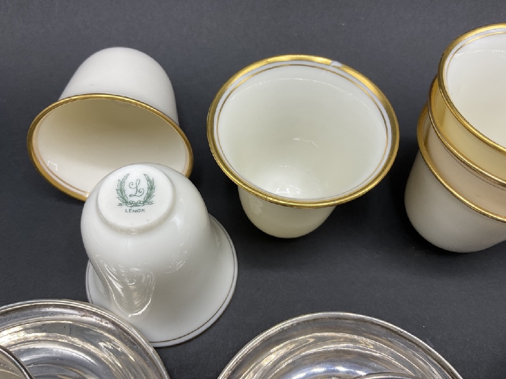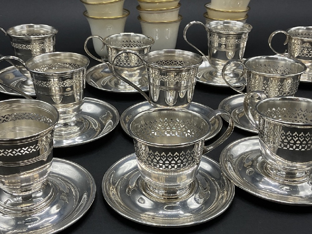 Lenox Porcelain and Sterling Silver Cups & Saucers. Twelve (12) place settings. One saucer missing.