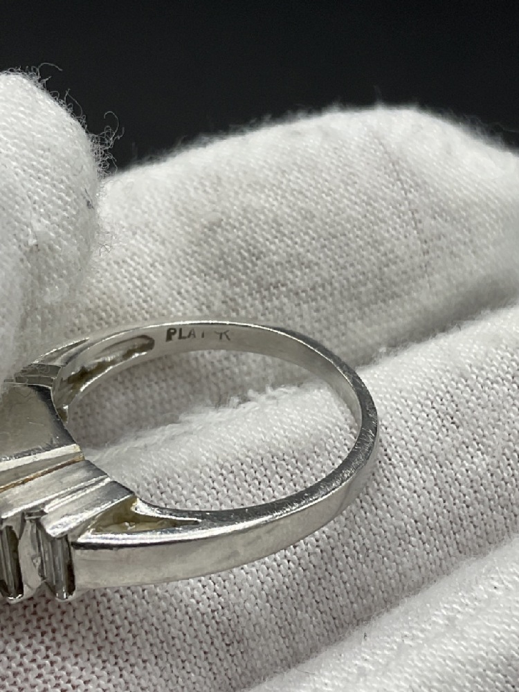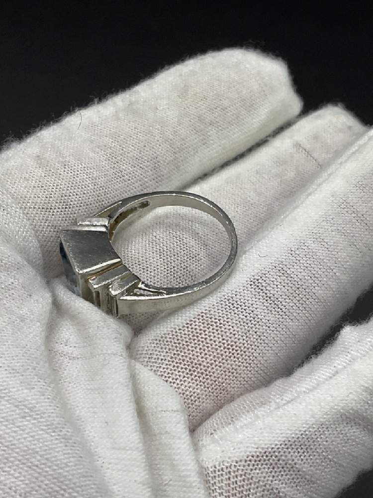 Fine Platinum Aquamarine and Baquette Diamond Ring.