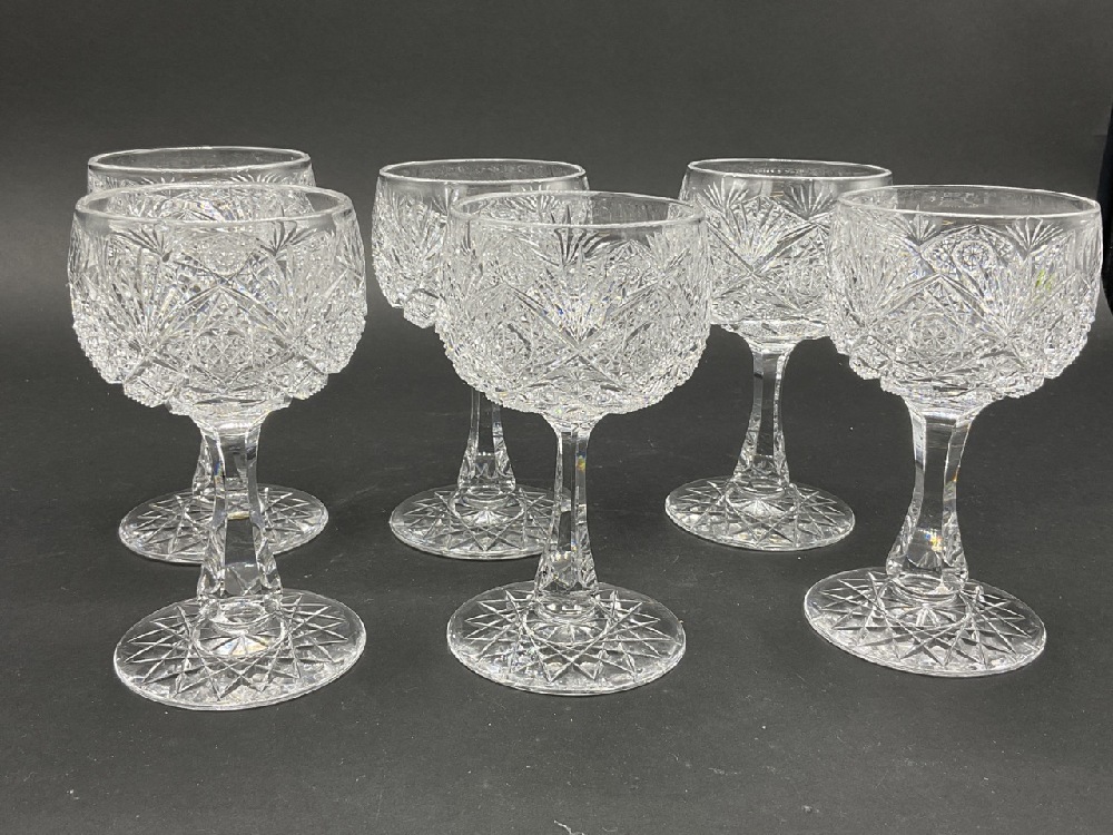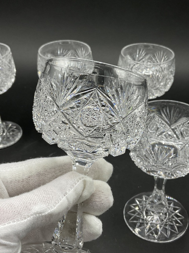 Six (6) American Brilliant Cut Glass Glasses ABCG