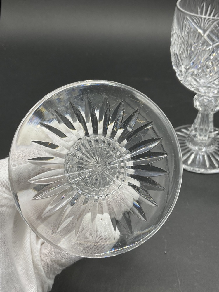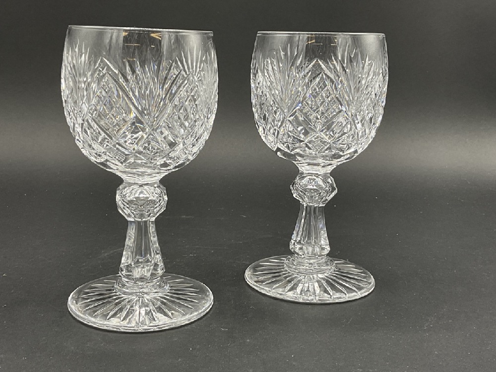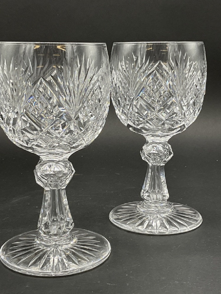 Two (2) American Brilliant Cut Glass ABCG Goblets with teardrop and diamond faceted stem.