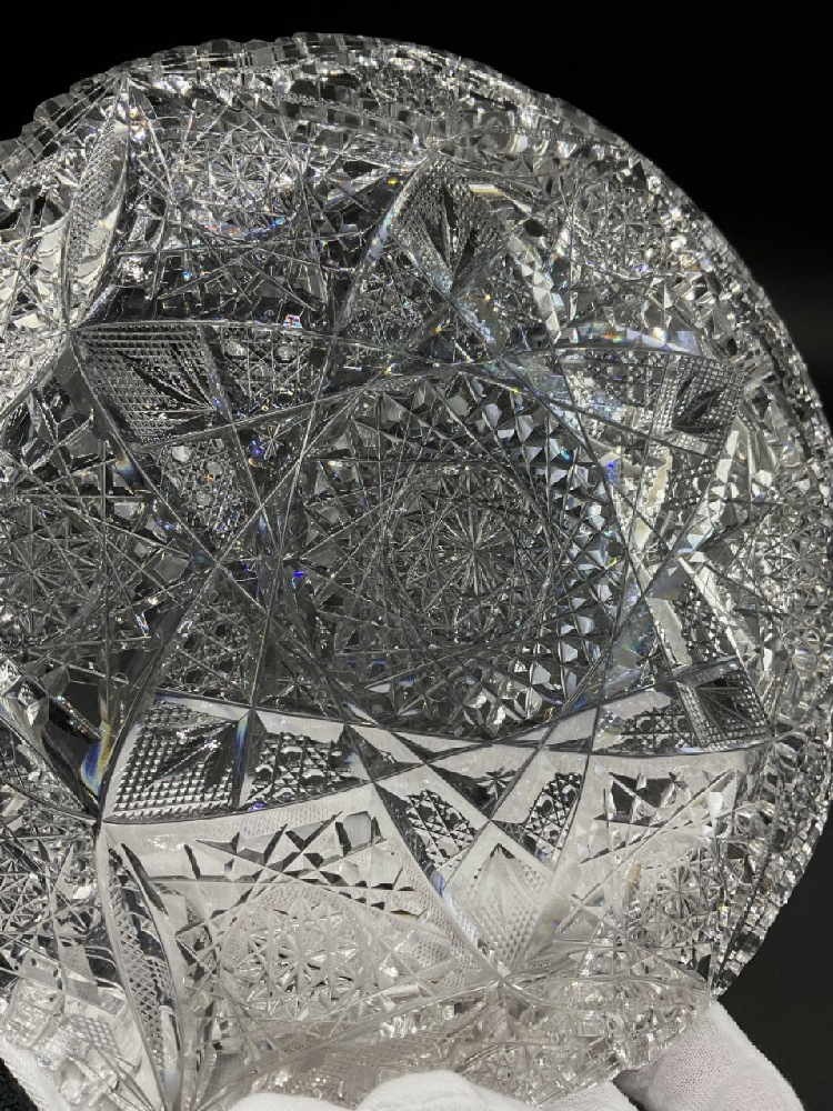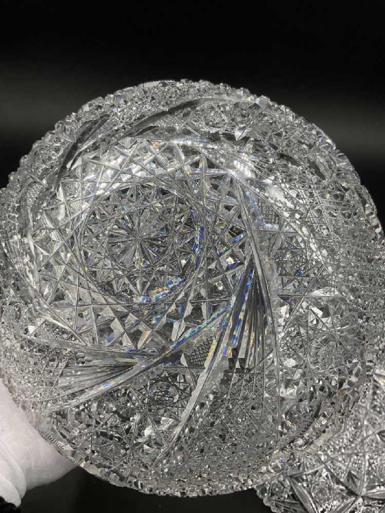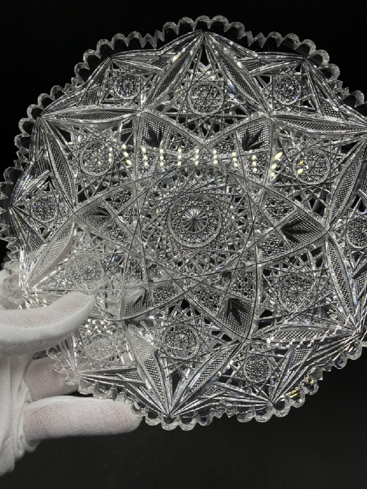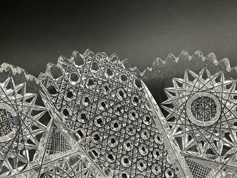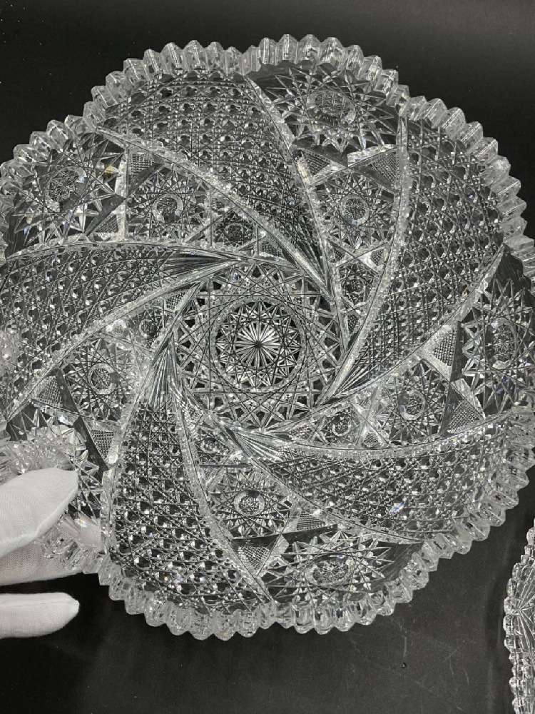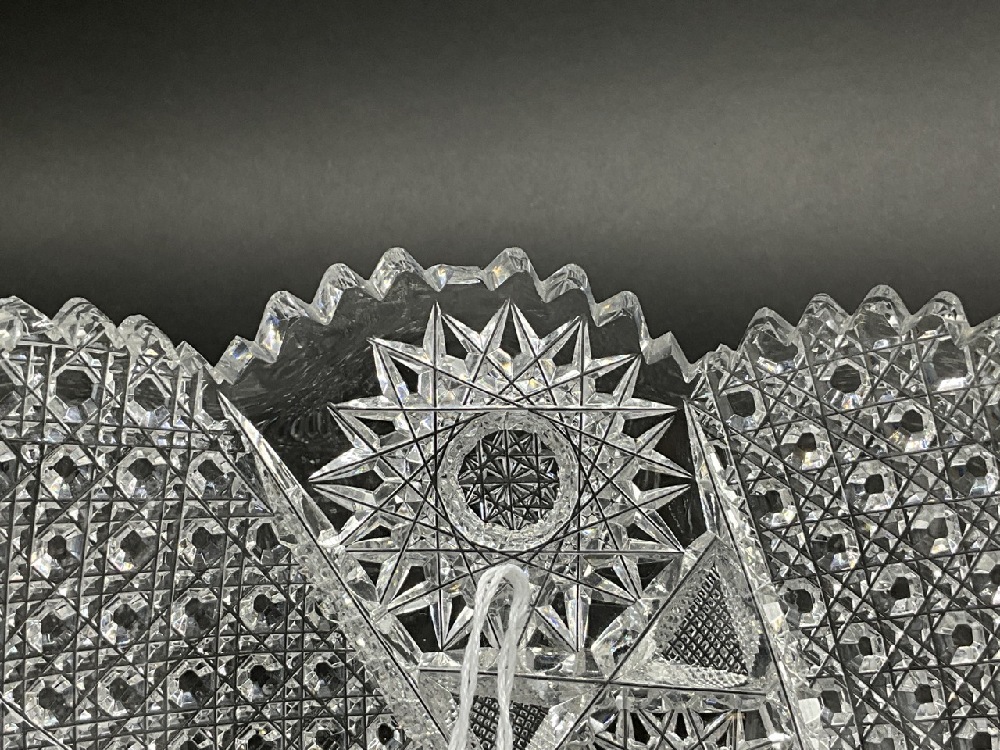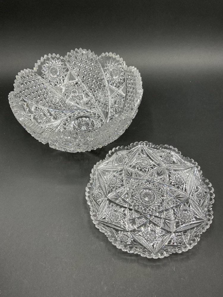 Two (2) American Brilliant Cut Glass ABCG Items. Heavily cut Fruit bowl and tray. Hobstar and button pattern.