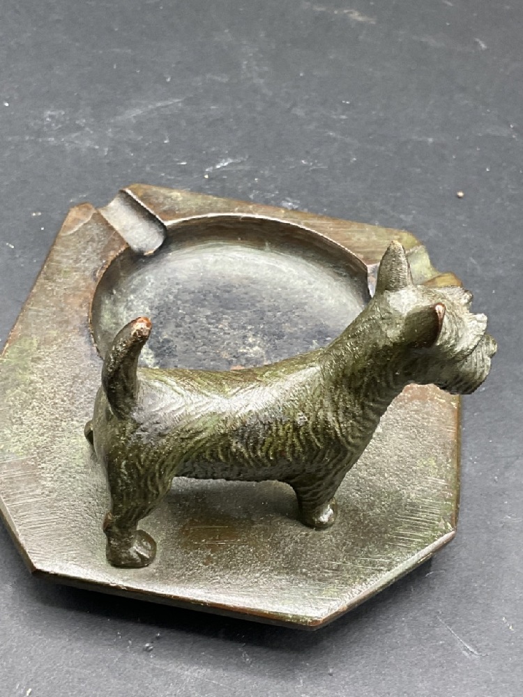 Bronze Scotty dog ashtray. Fine patina. Unsigned.