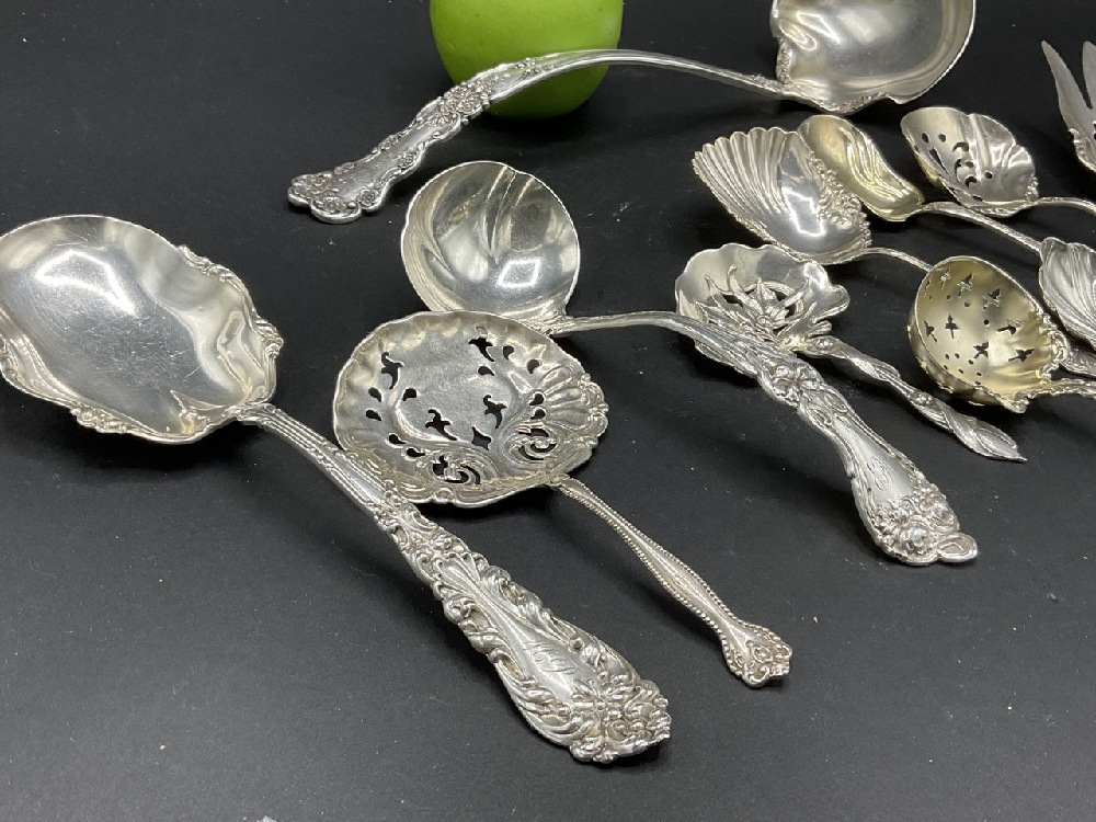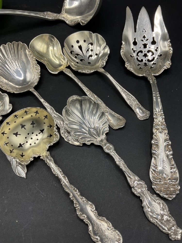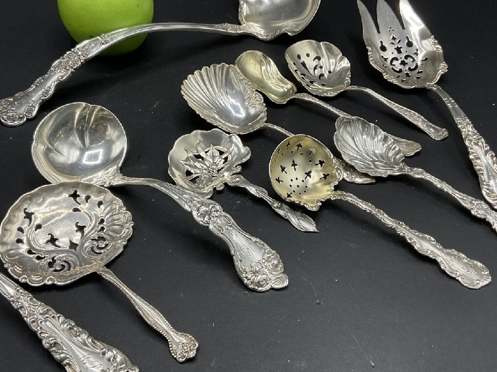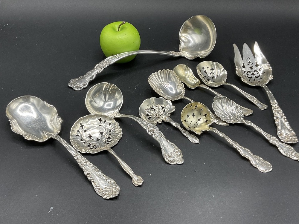 Eleven (11) Piece Compiled Sterling Silver Serving Pieces. Including Alvin, Whiting and Gorham. Most monogrammed.