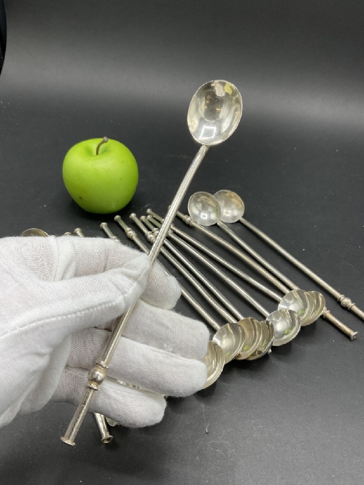 Uxmal Taxco Mexican sterling silver iced tea spoons.