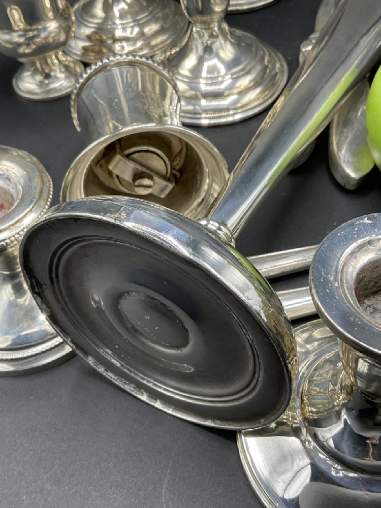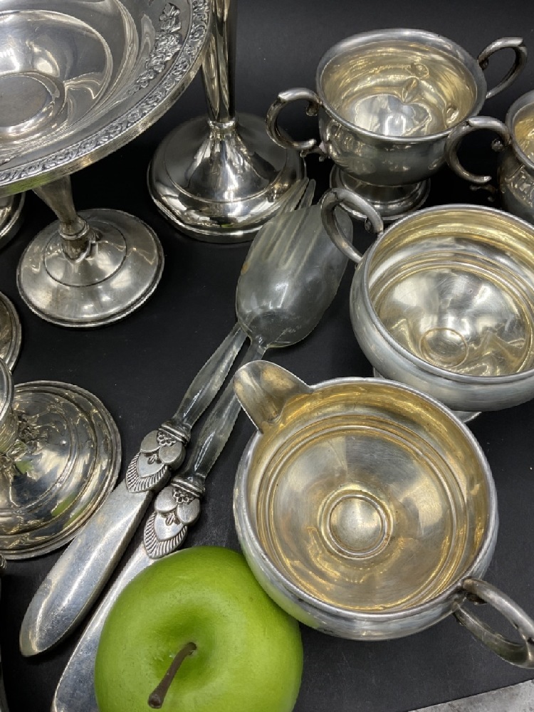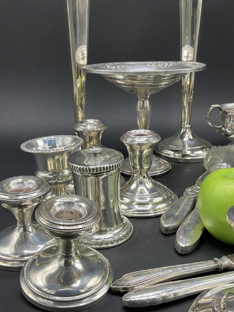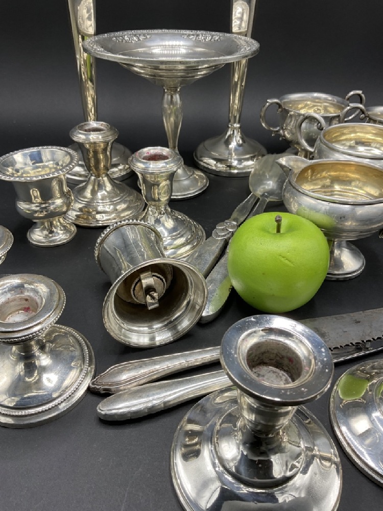 Estate compiled sterling silver weighted table wares.