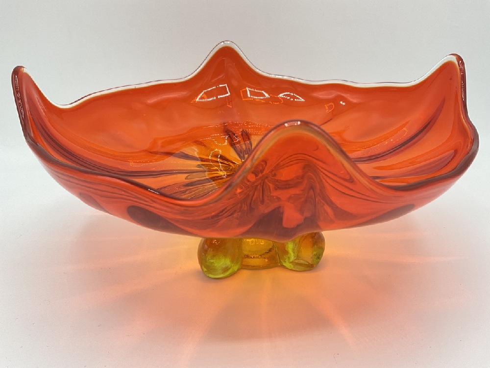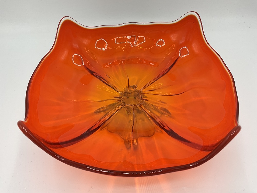Vintage Viking Amberina Glass Footed Four Square Platter.