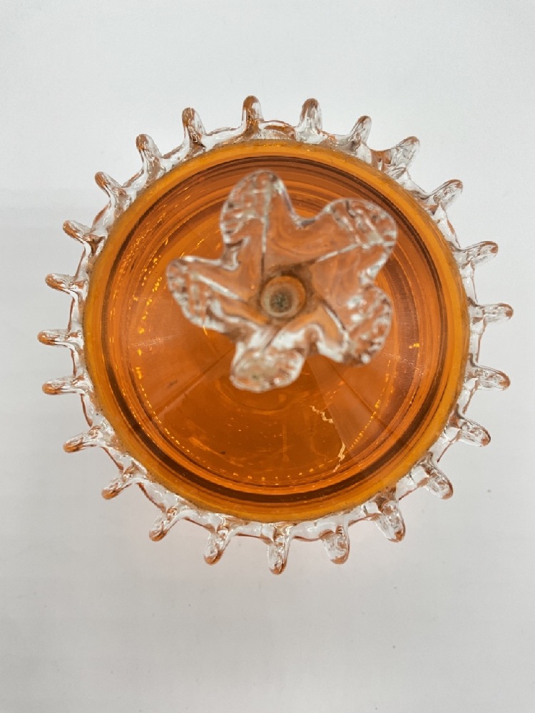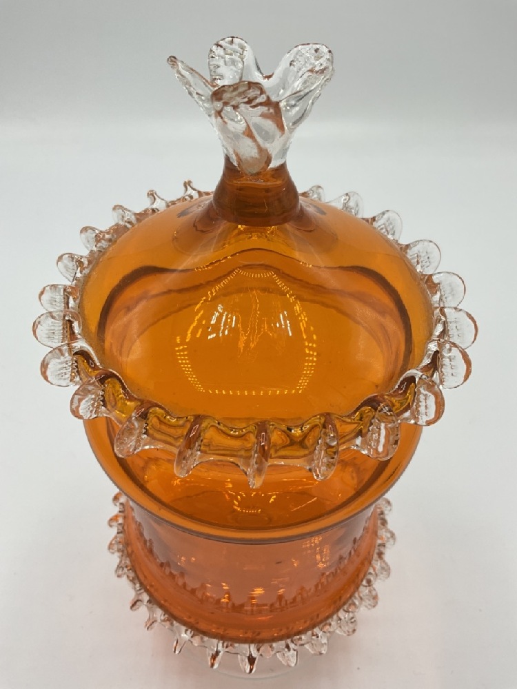 Vintage Orange Glass Lidded Jar with Applied Candy Ribbon Trim