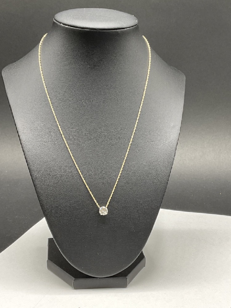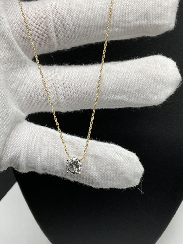 14K 1.38 Carat Diamond and Yellow Gold Necklace. 17" chain. Natural Mine Cut Diamond. I2 Clarity G-H Color. #5 801–10653 Jeweler Retail: $5350.00