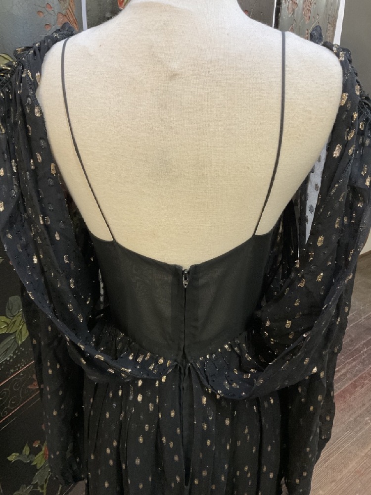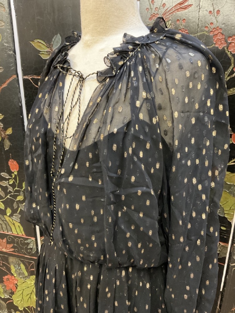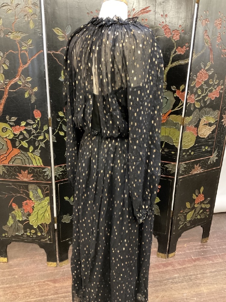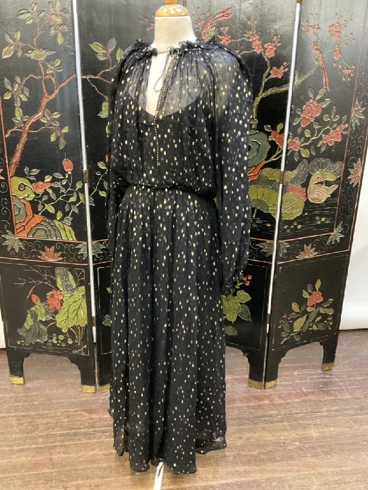 Oscar de la Renta Size 8 1970's Vintage Black and Gold Silk Gown.