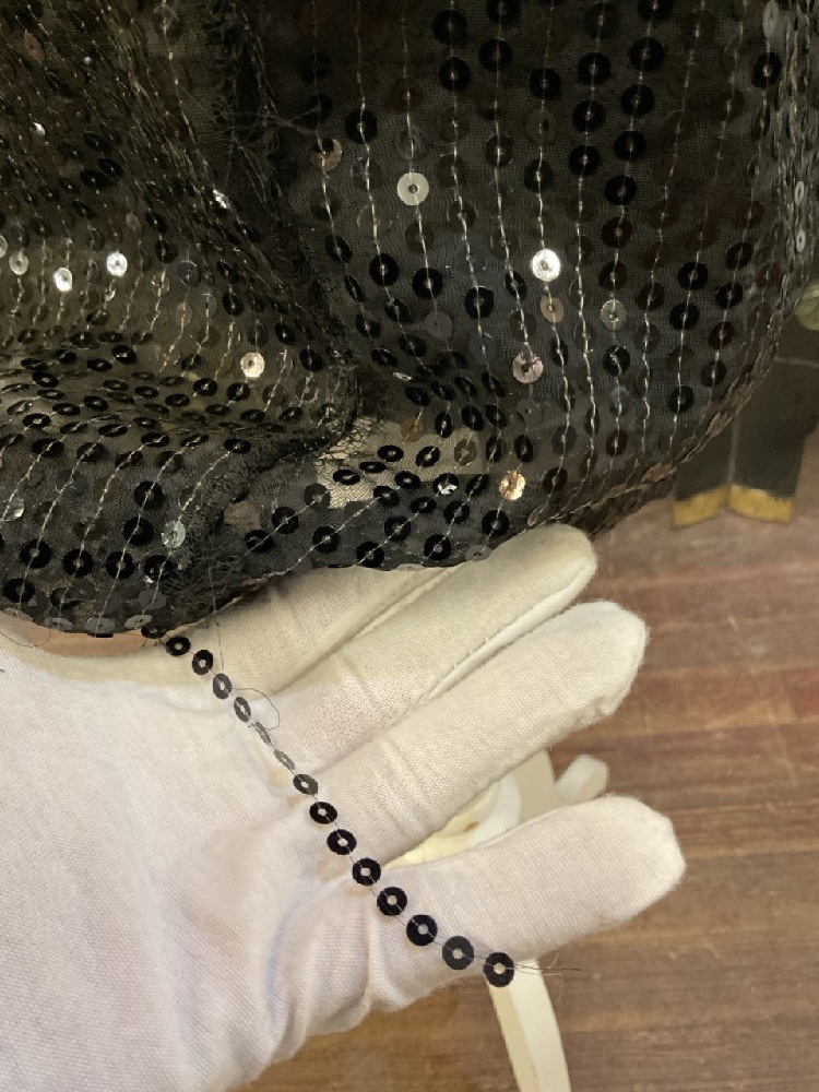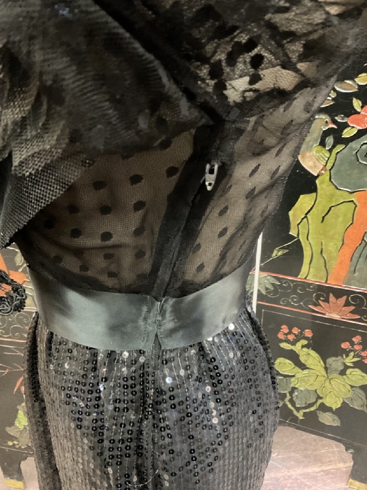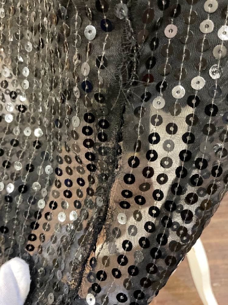 Sequin repair needed at hem of dress. Please see photograph preview.