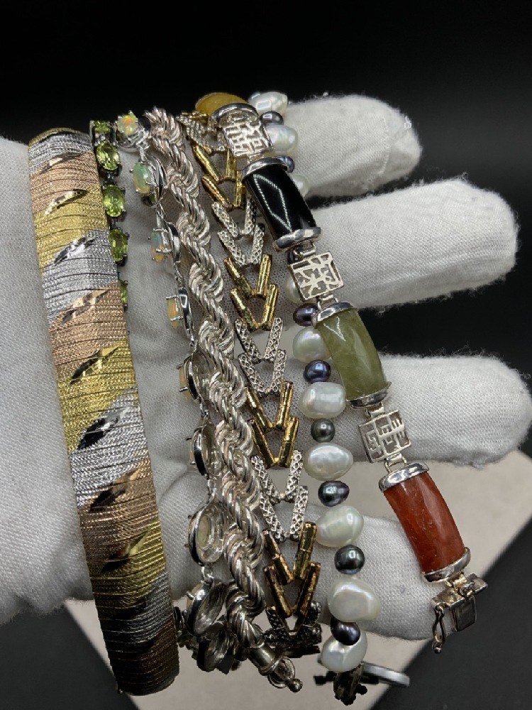Seven (7) Assorted Estate Found Sterling Silver Bracelets.