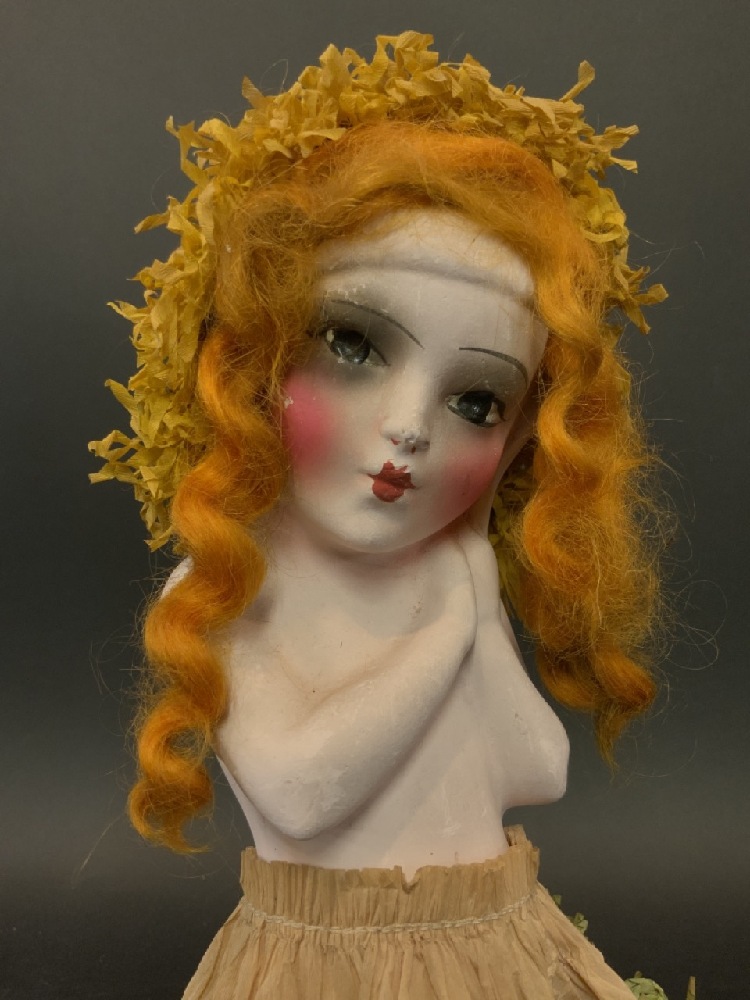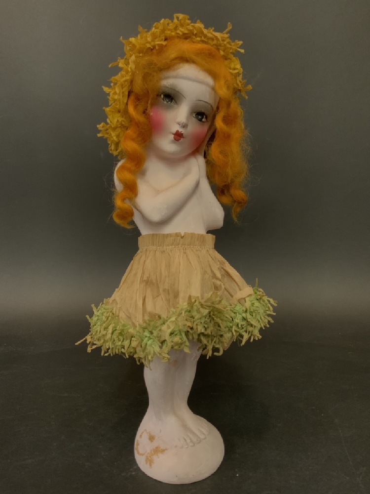 1920's Vintage Chalkware Doll with Crepe Skirt