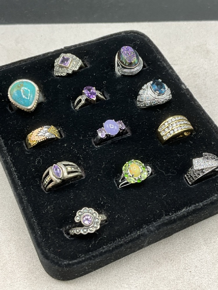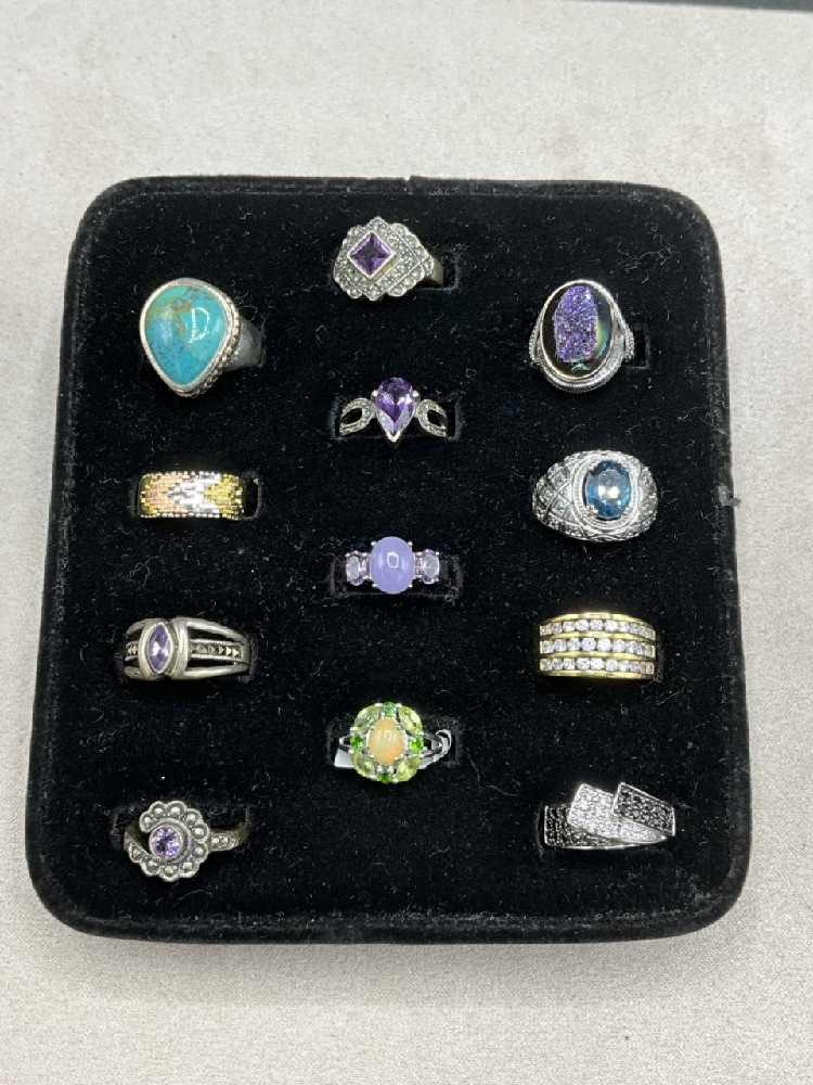 Twelve (12) Estate Sterling Silver Rings Group Lot.